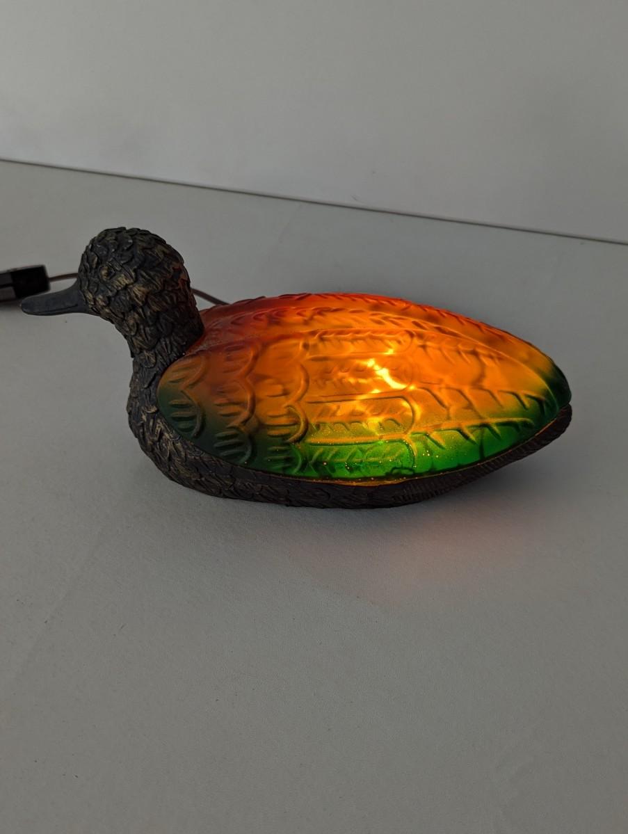 Brushed Bronze & Amber Glass Figural Duck Lamp