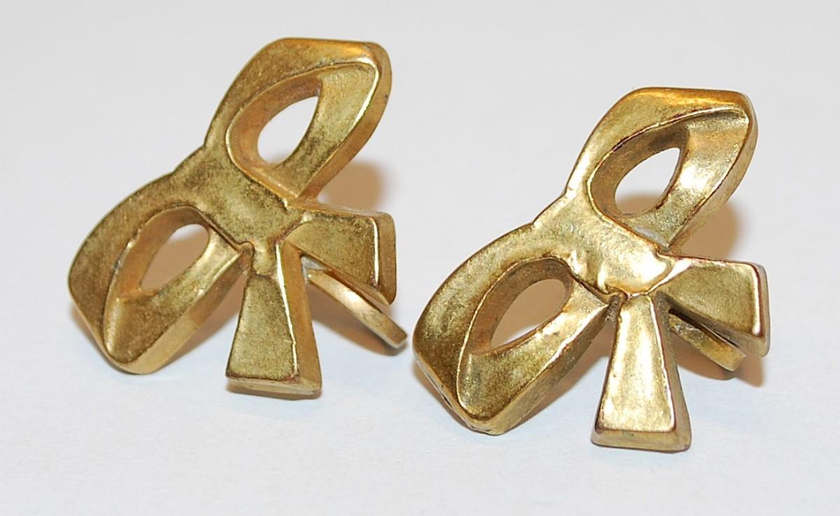 Brushed Gold Colored BOWTIE EARRINGS Set with Screwback Clasp