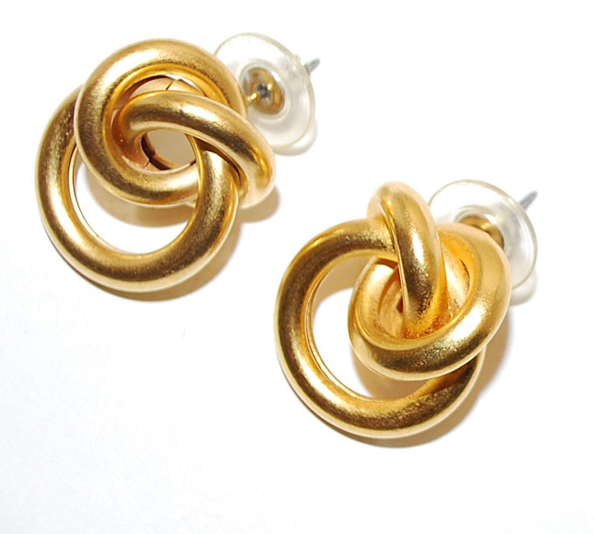 Brushed Gold Colored LOOSE KNOT EARRINGS Set with Stud Post Clasp