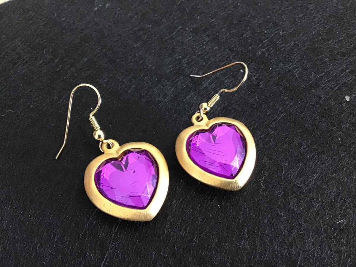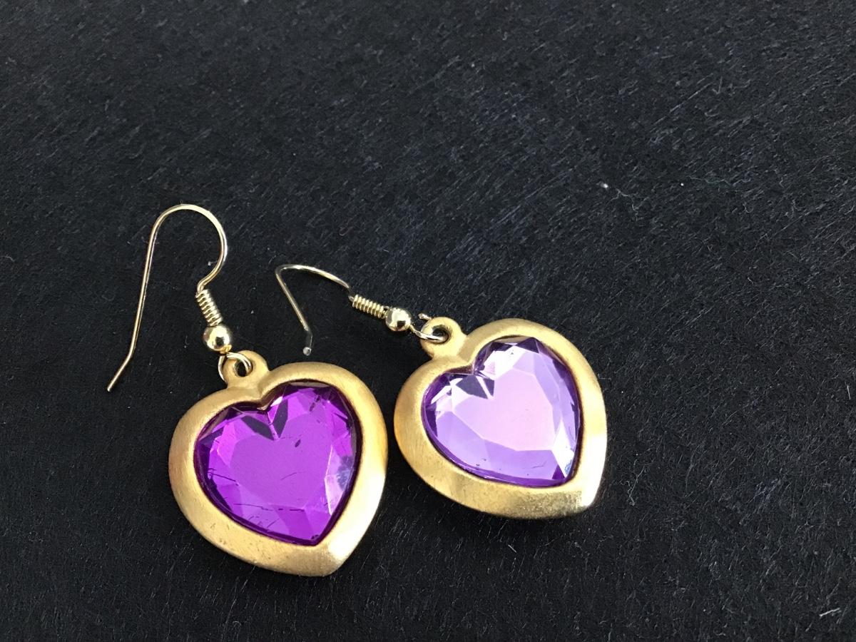 Brushed Gold Purple Heart Earrings