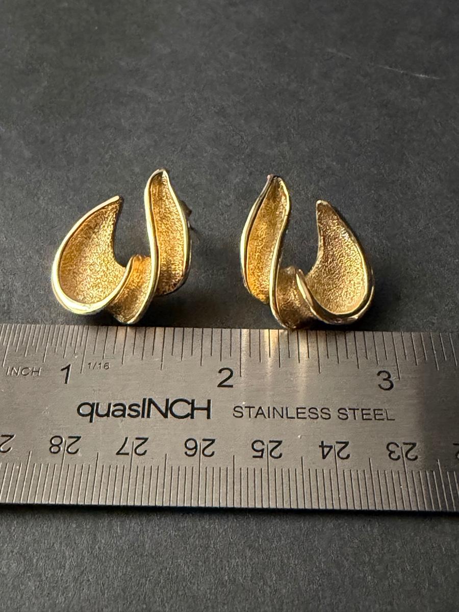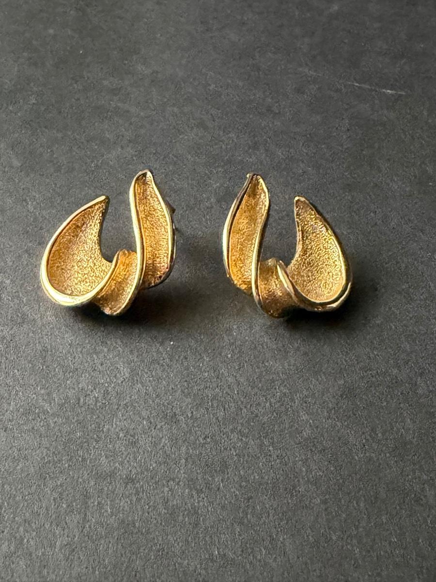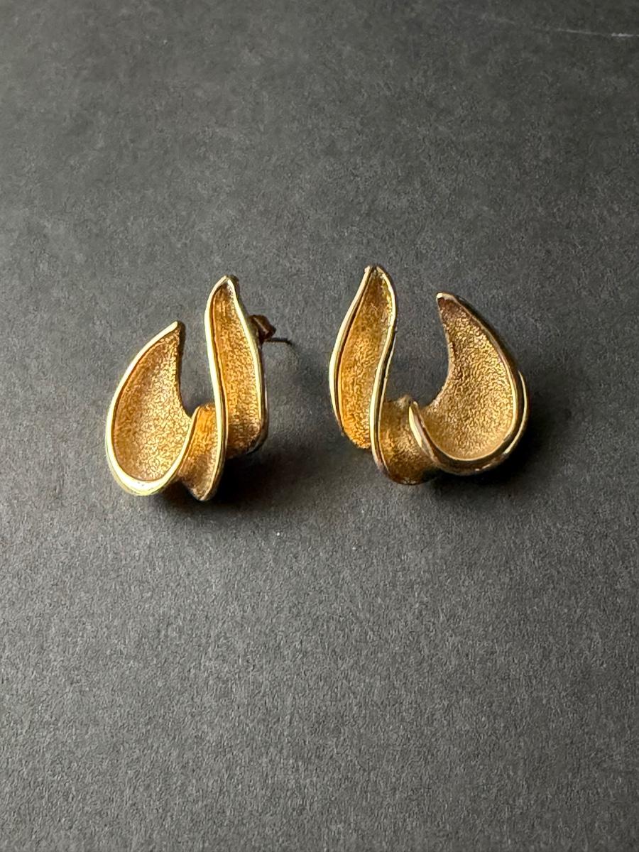 Brushed gold tone abstract stud earrings