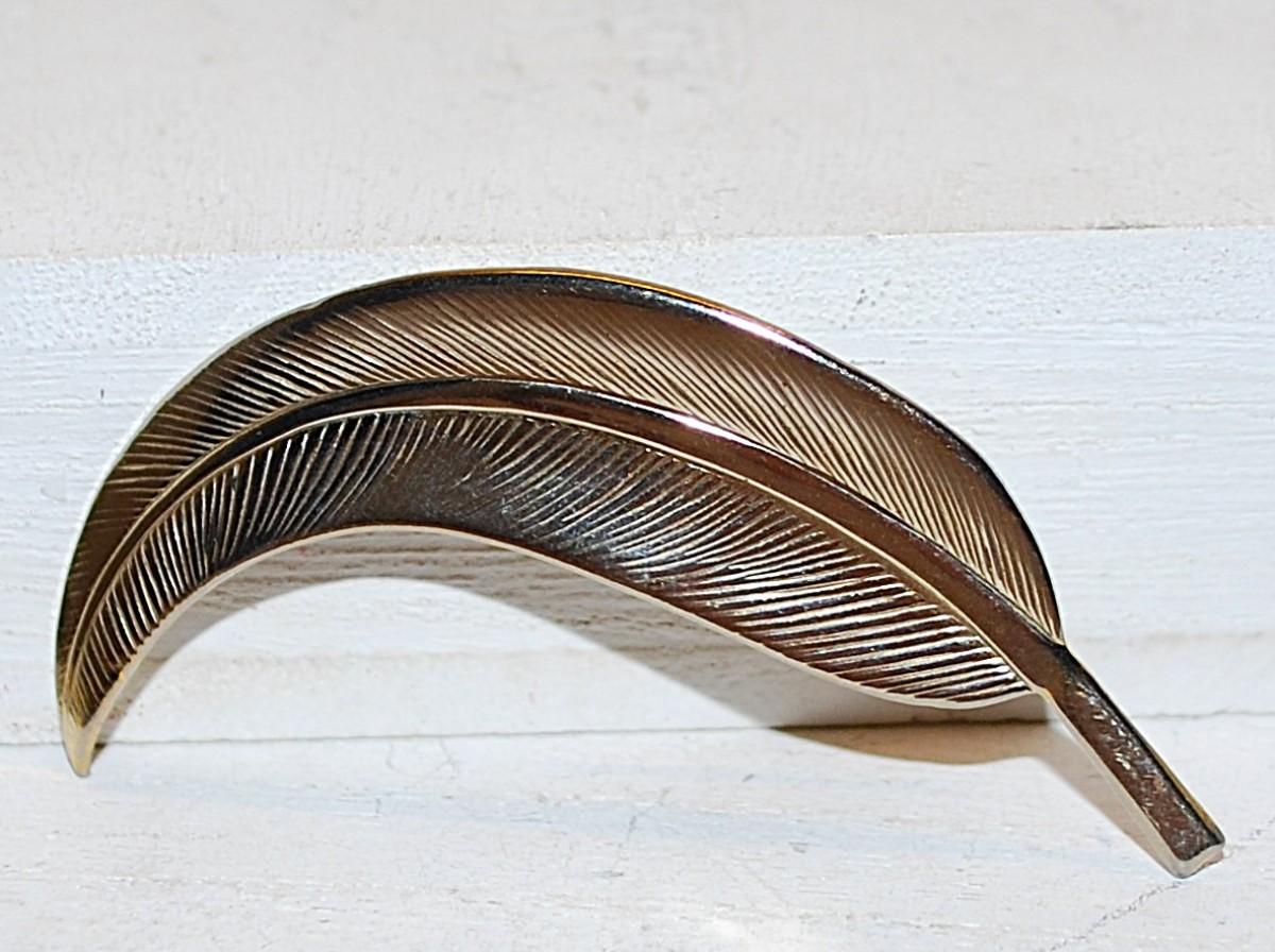 Brushed Light Gold Tone "Palm Frond" BROOCH (2½")