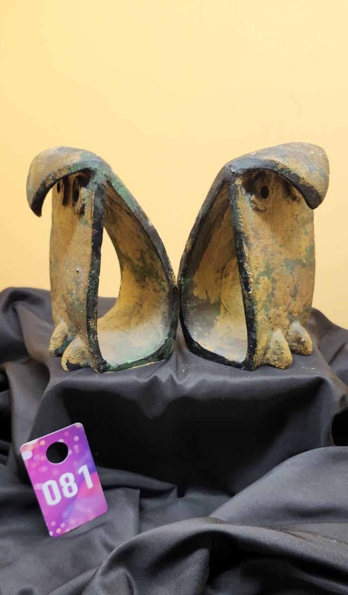 Brutalist Iron Owl Bookends