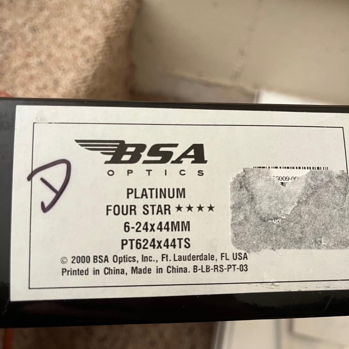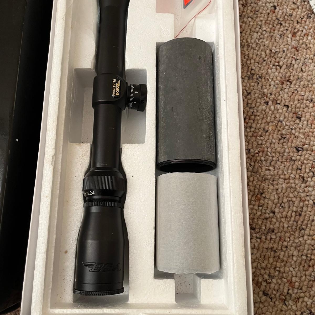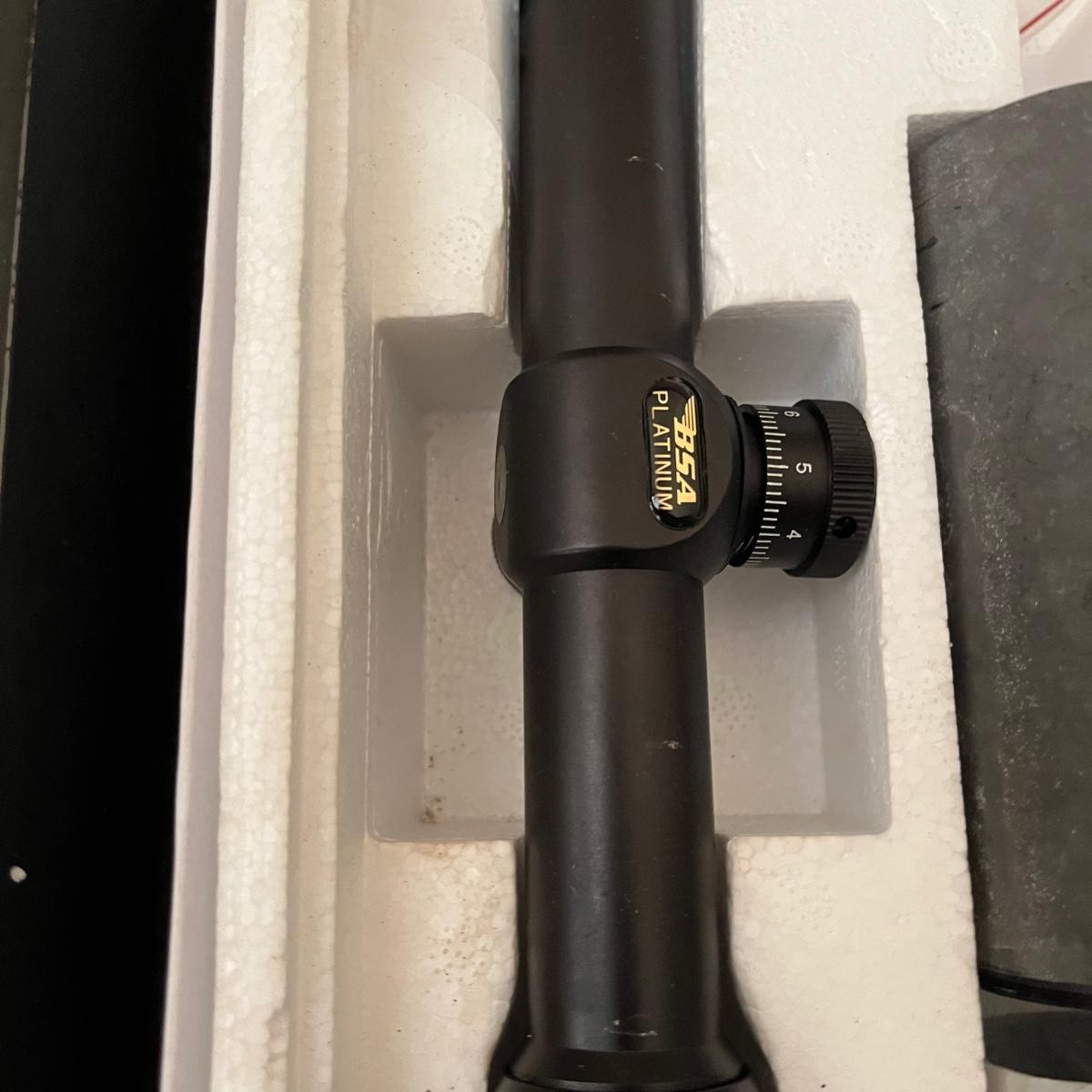 Lot includes a BSA Platinum 6-24 x 44 MM Riflescope and a Bushnell 3-9 x 32 riflescope. BSA scope appears to be new in box.