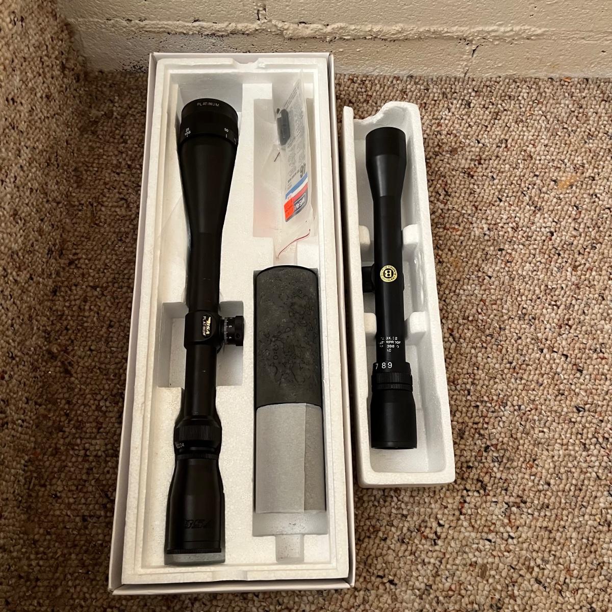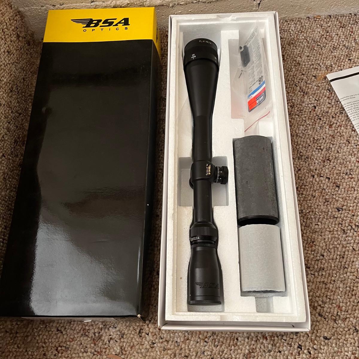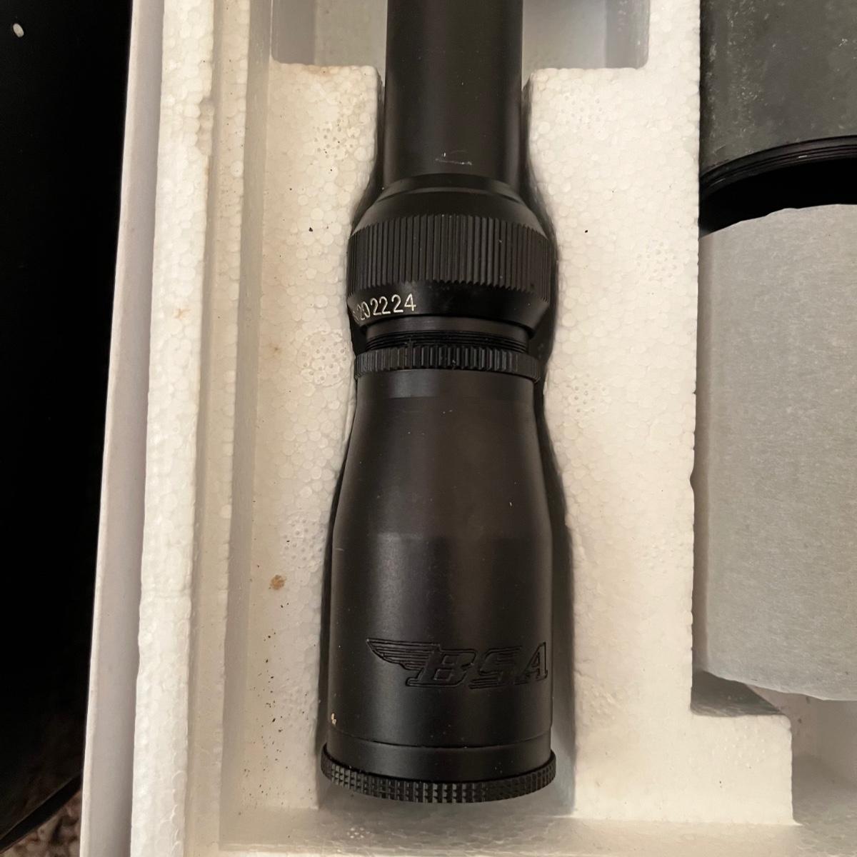Lot includes a BSA Platinum 6-24 x 44 MM Riflescope and a Bushnell 3-9 x 32 riflescope. BSA scope appears to be new in box.