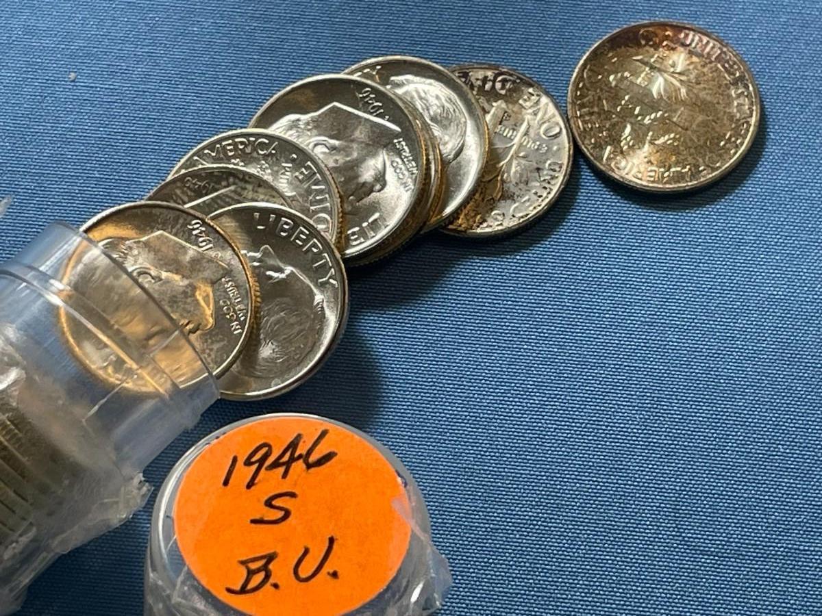 BU Roll of 50 1946-S Roosevelt Silver Dimes -Choice BU Original Roll as Pictured. Satisfaction Guaranteed. $7 DOMESTIC SHIPPING.