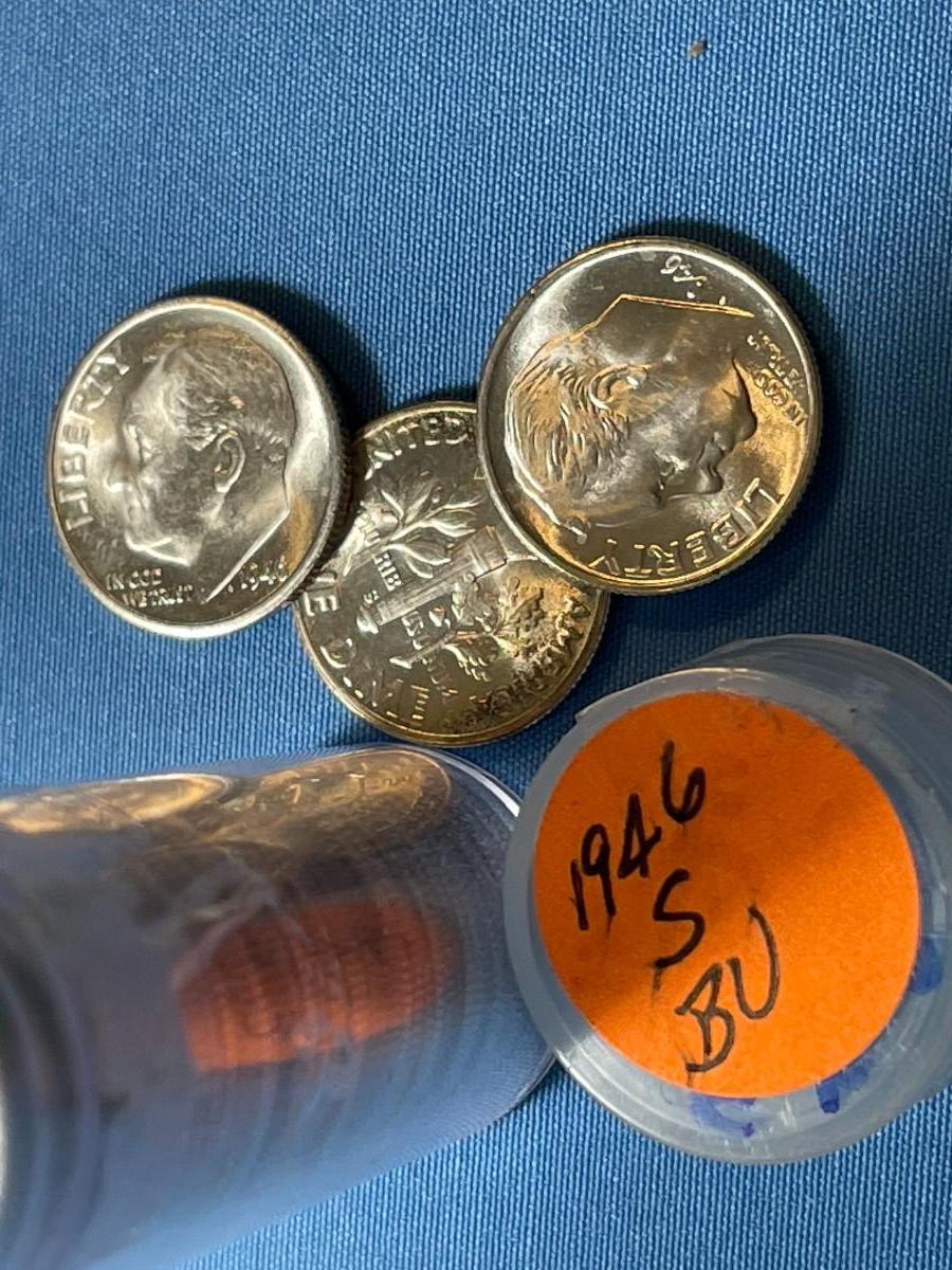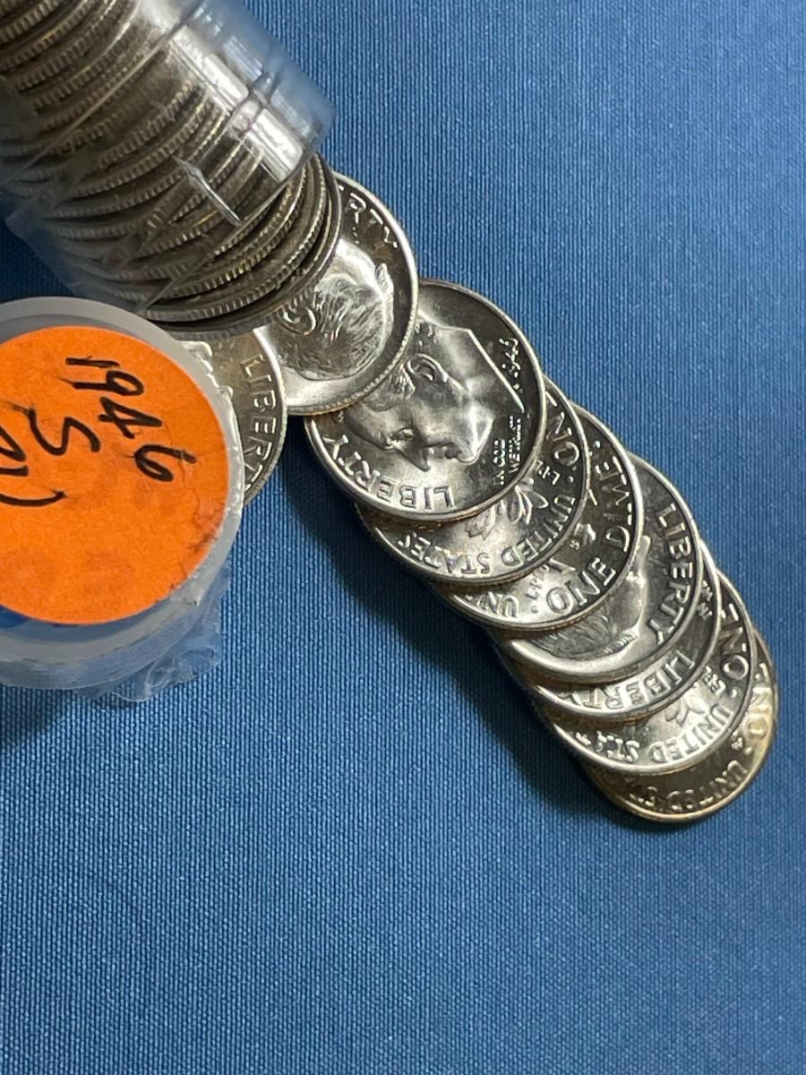 BU Roll of 50 1946-S Roosevelt Silver Dimes -Choice BU Original Roll as Pictured. Satisfaction Guaranteed. $7 DOMESTIC SHIPPING.
