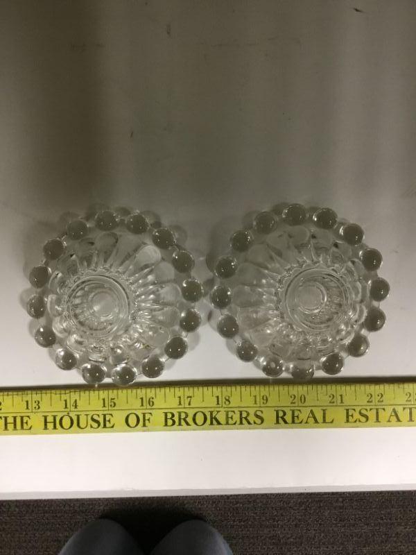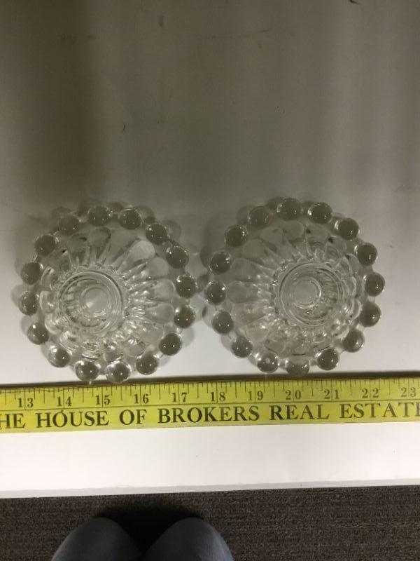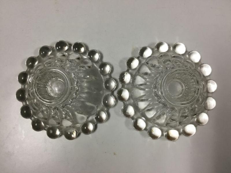 Pair of bubble edge candleholders. Good vintage condition. Hold taper candles.