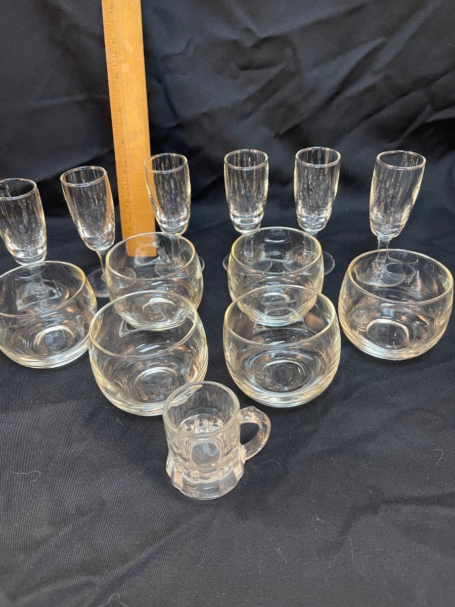 Vintage Barware Clear Glass Lot Roly Poly Bubble Cordial Shot Glasses