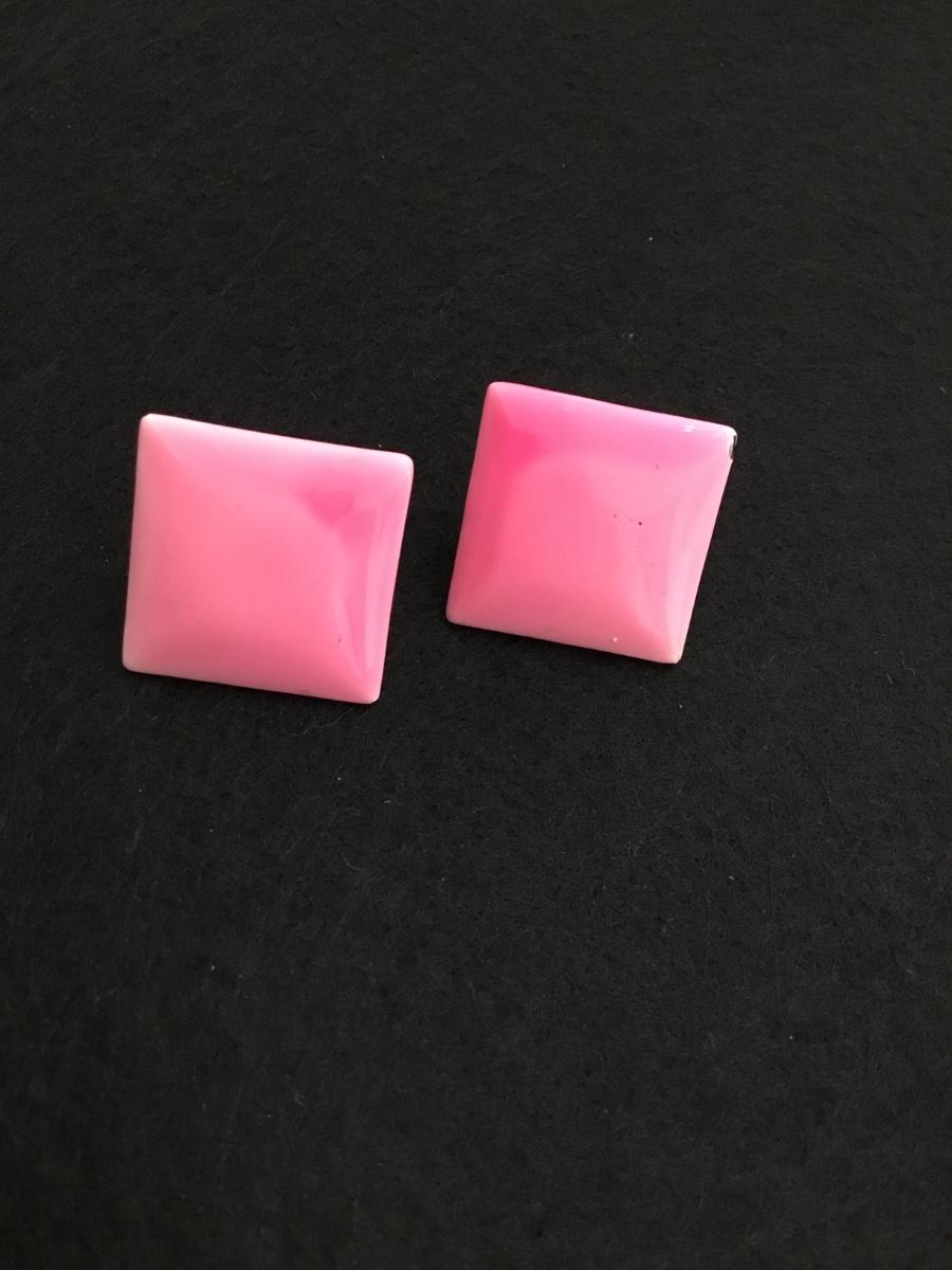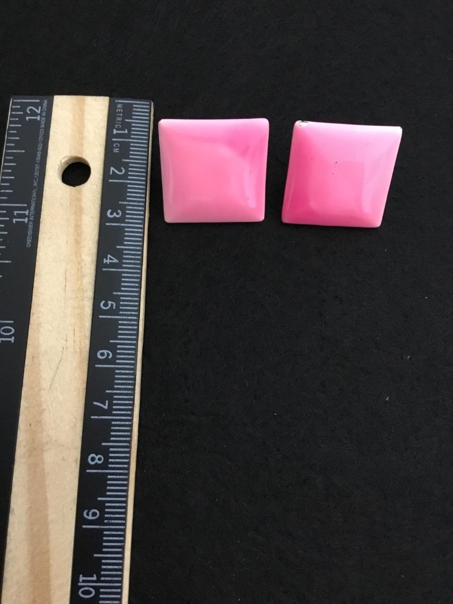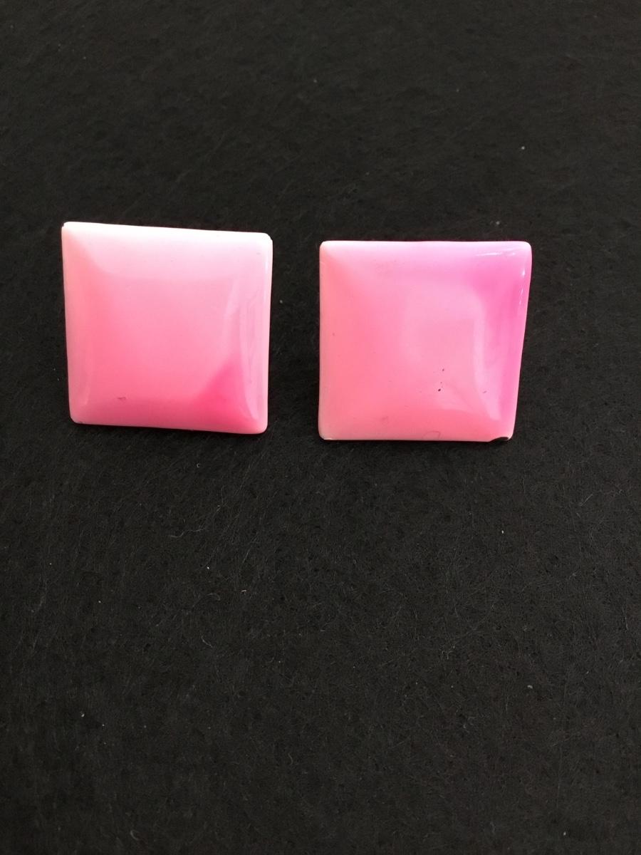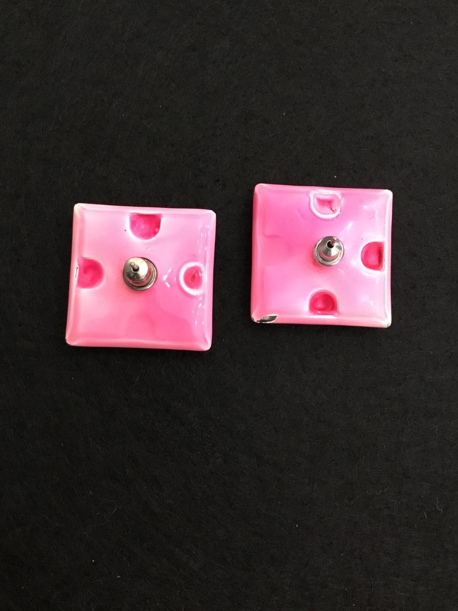 Bubble gum, pink, ceramic square, enameled stud earrings