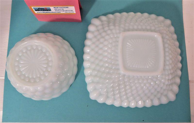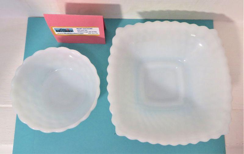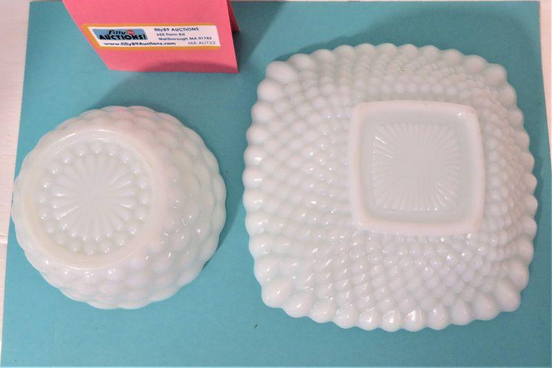 Vintage Bubble Milk Glass Serving Bowl Dishes LOT of (2). Measures 6.5" Square and 4.5" diameter. In Good Condition for its age.
