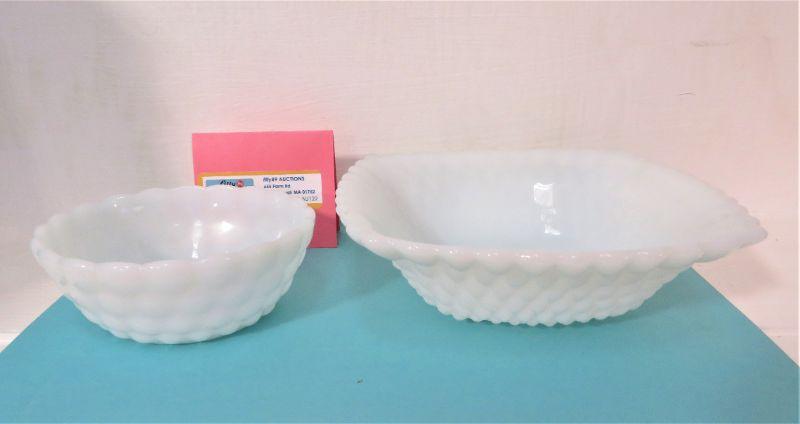 Bubble Milk Glass Serving Bowl Dishes (2) VINTAGE LOT