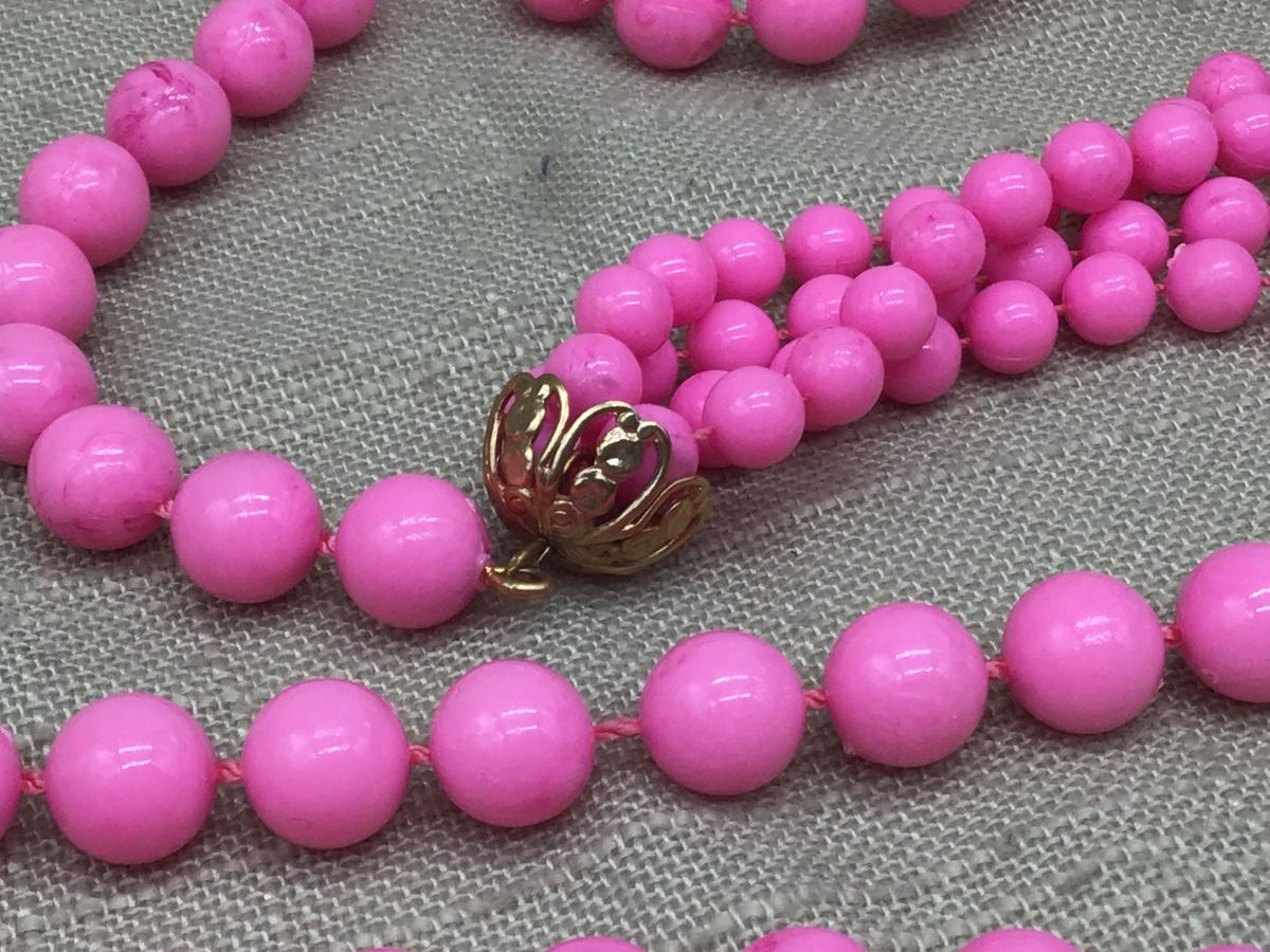 Bubblegum Pink Bead Tassel Statement Necklace Gold Tone Filigree