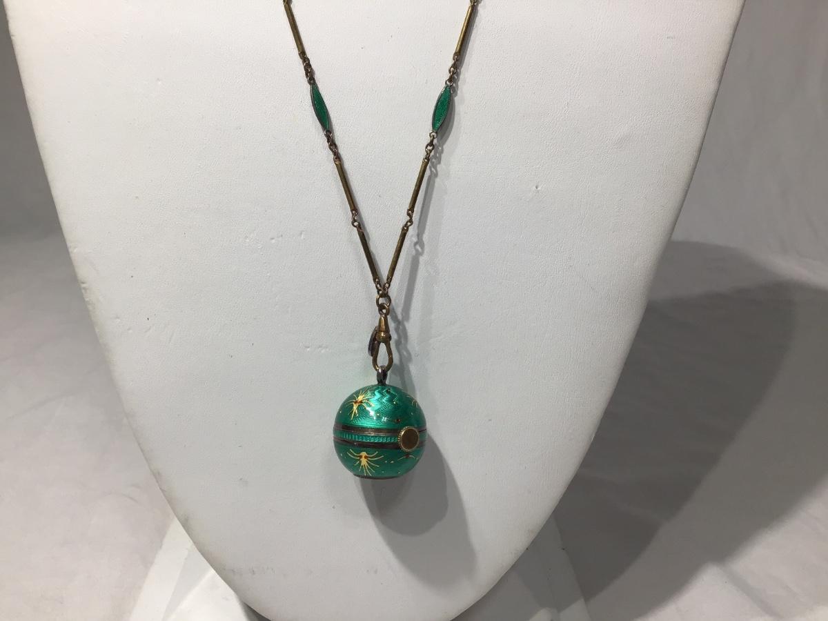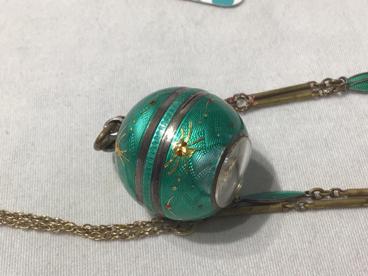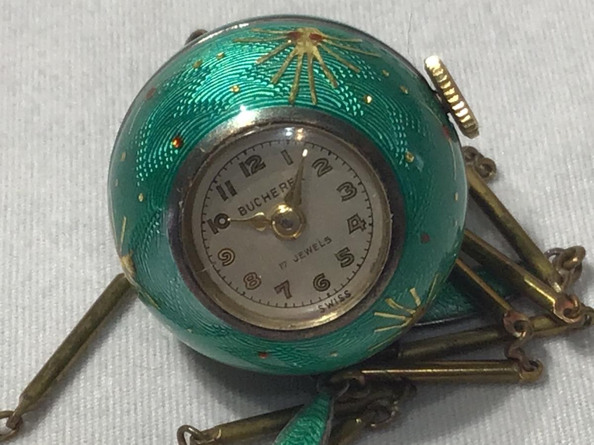 Bucherer with 17 Jewel Enamel Rotating Orb with Matching Chain