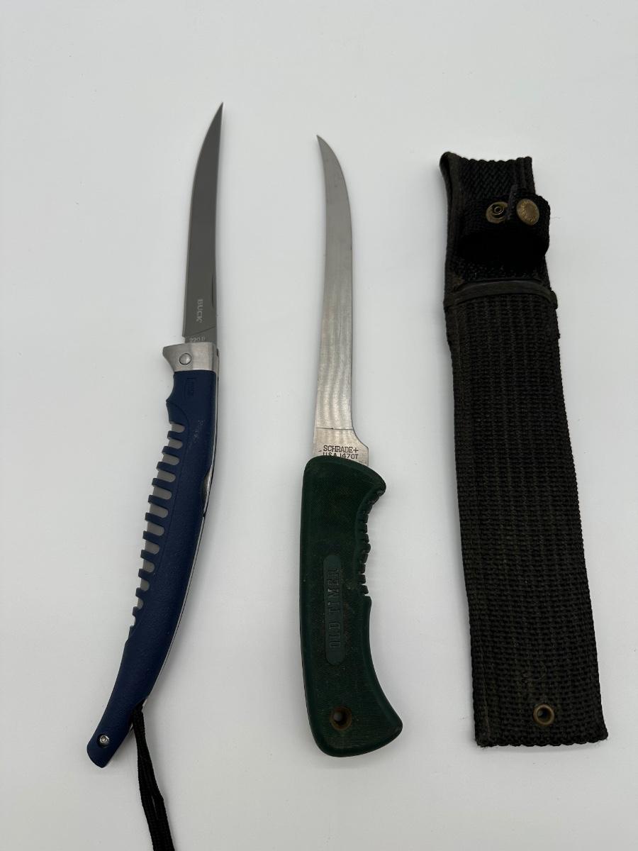 Buck 220 Fillet Knife + Schrade Old Timer 147OT – USA Made Knife Lot w/ Sheath