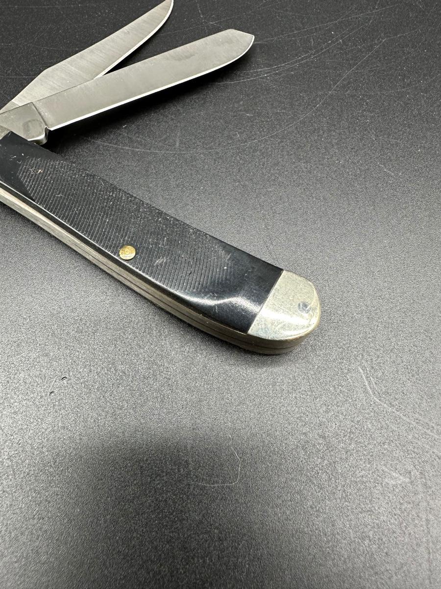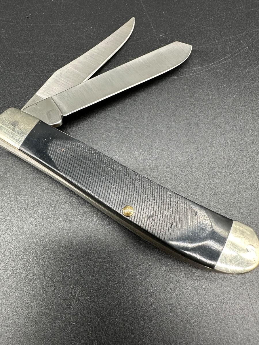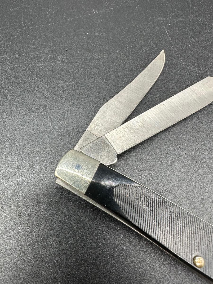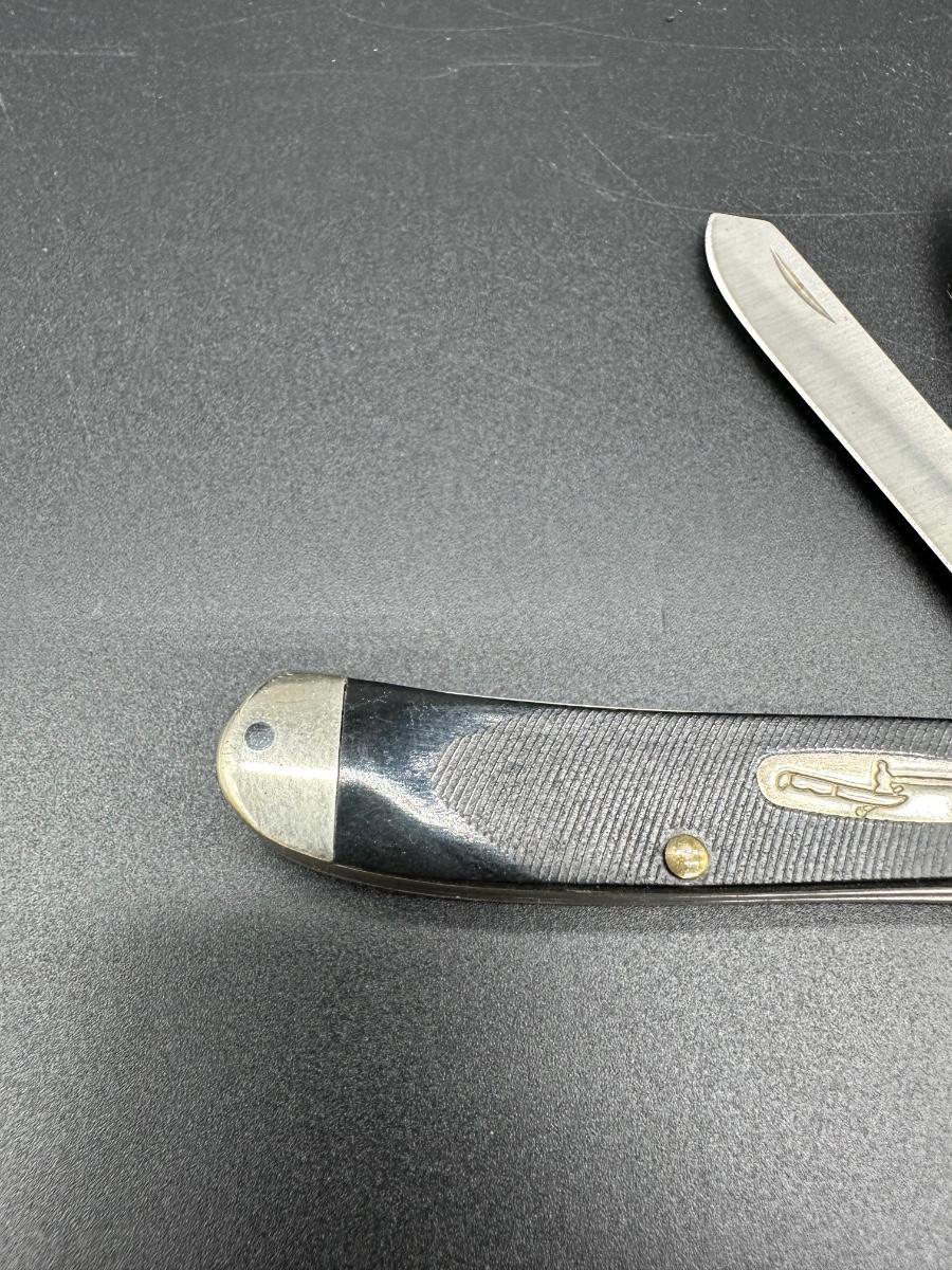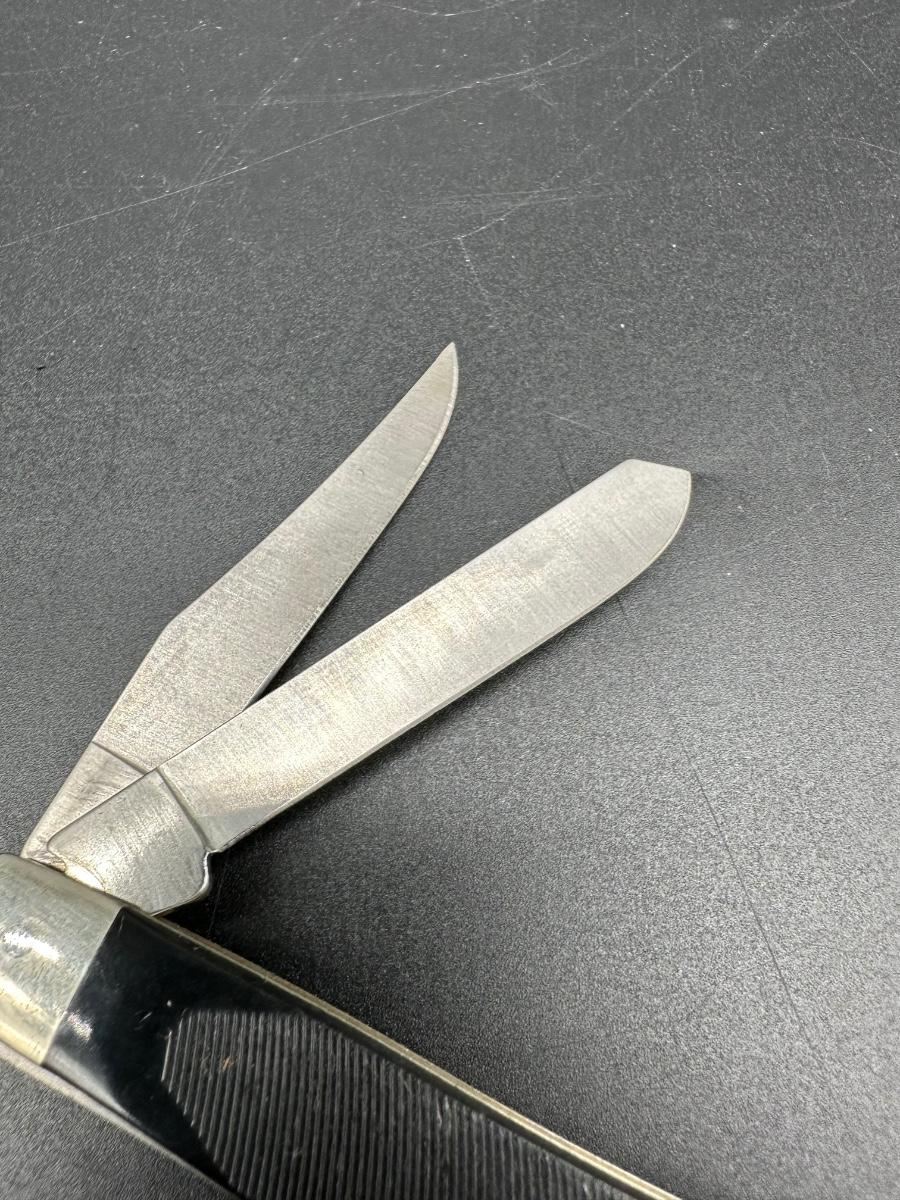 Blades appear clean with light surface wear and typical age patina. Edges look straight with no visible chips. Both blades open and close properly with solid snap.