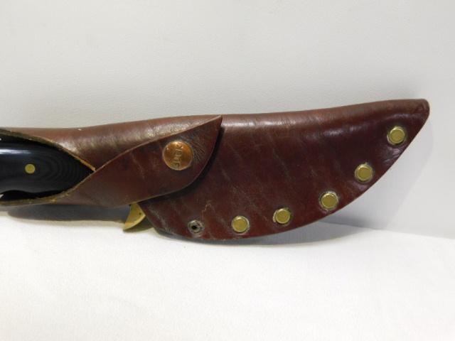 Buck Kalinga Knife with Leather Sheath 9.5" Overall leather sheath has some buttons missing. Knife could use cleaning but in good condition
