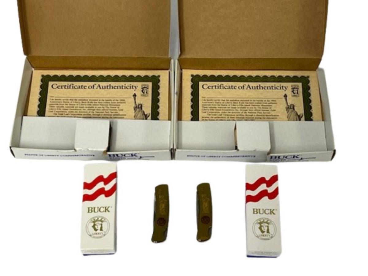 NOS. Buck 826. Total of 2 pieces. Includes original boxes. Measurement of box: 7.5" x 5.5" x 1.5" (each). [ST]