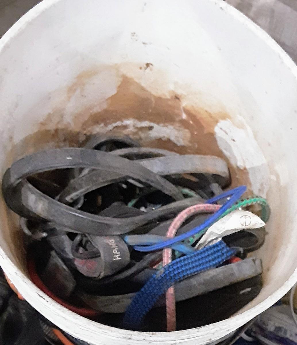 Bucket of bungees, etc