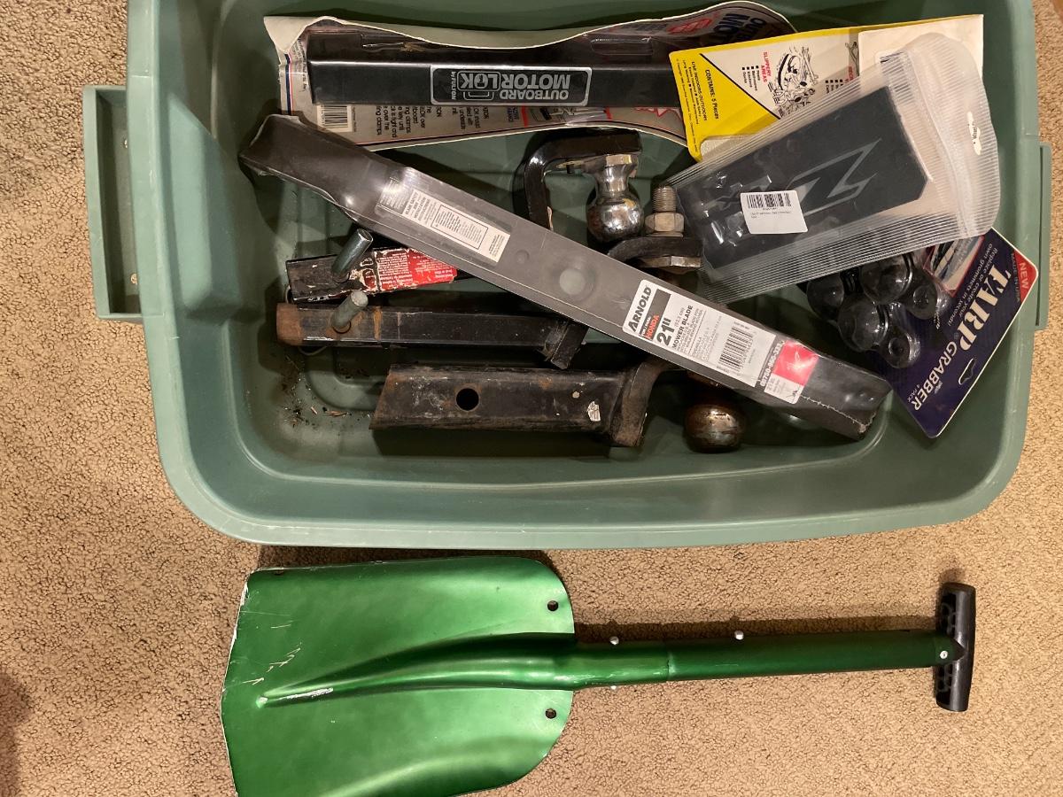 Bucket of hitches and shovel
