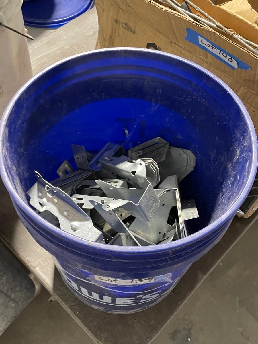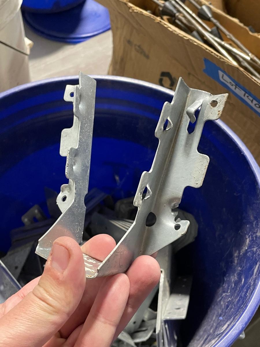 Bucket of long metal joist hangars