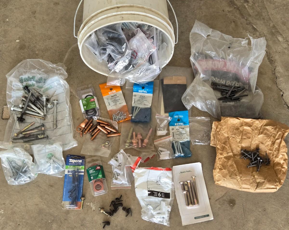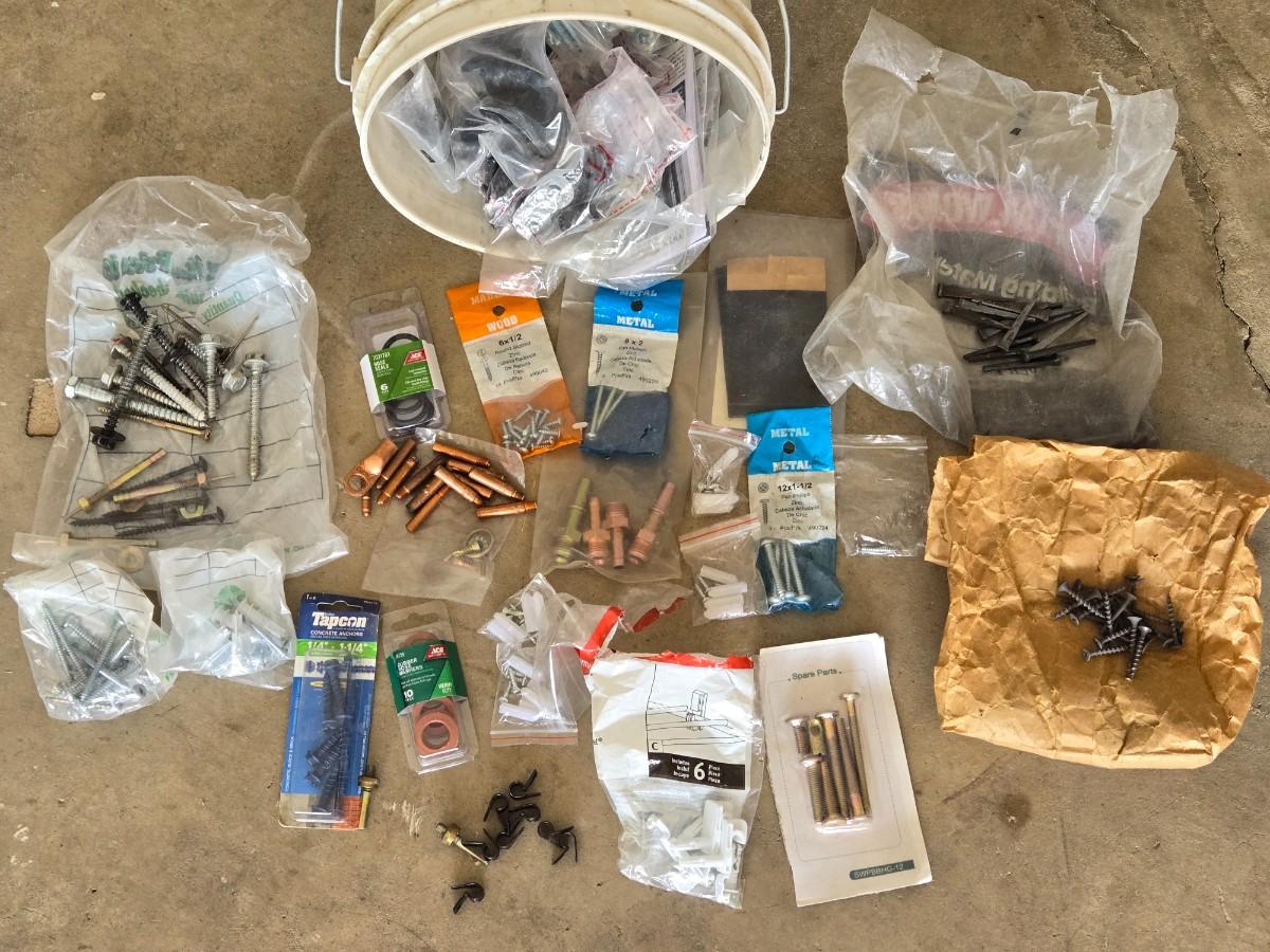 Bucket of Loose Nails, Screws, Washer