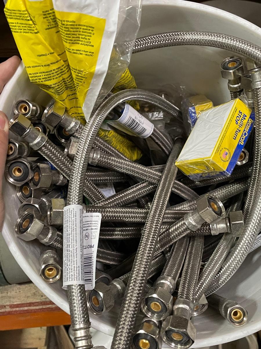 Bucket with Fawcett / Toilet Connector Hoses - All new assorted hoses +