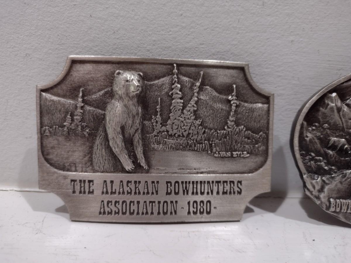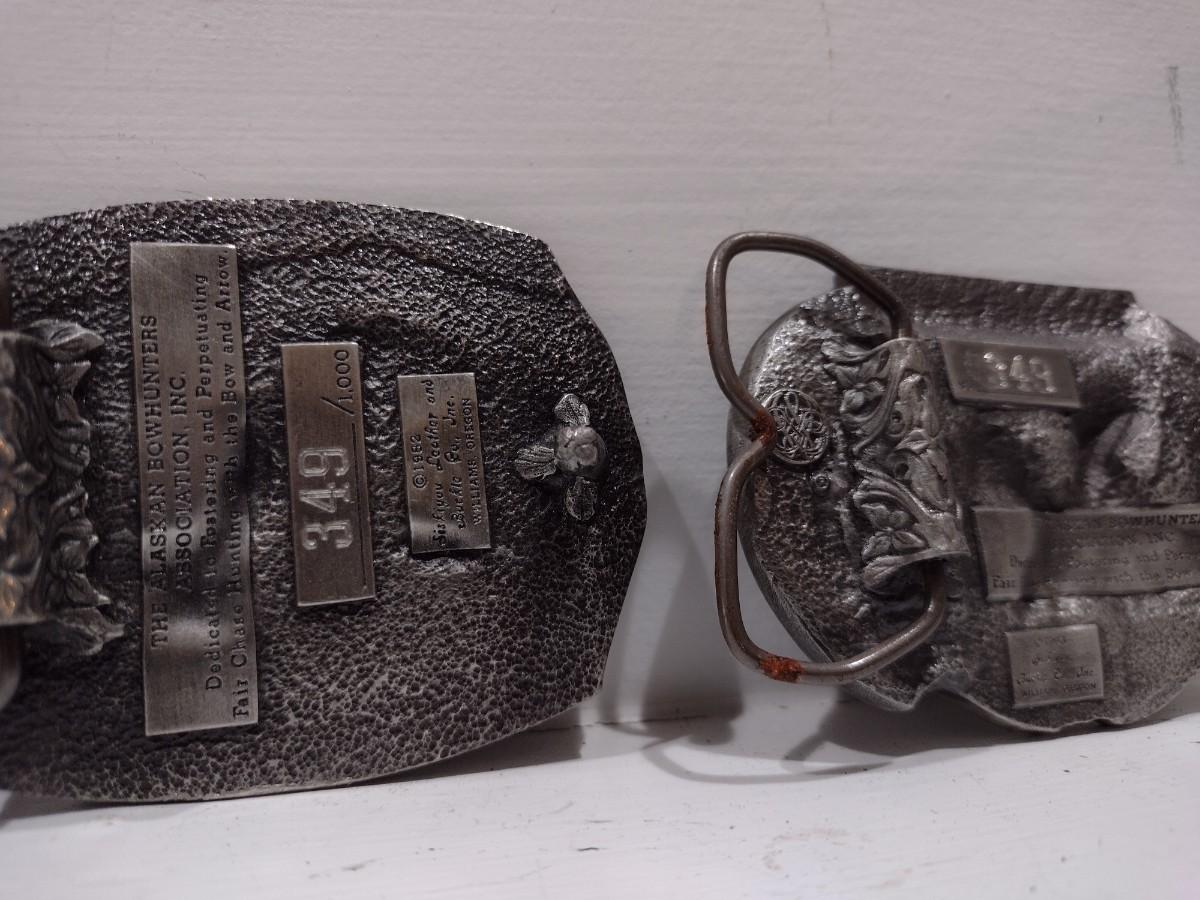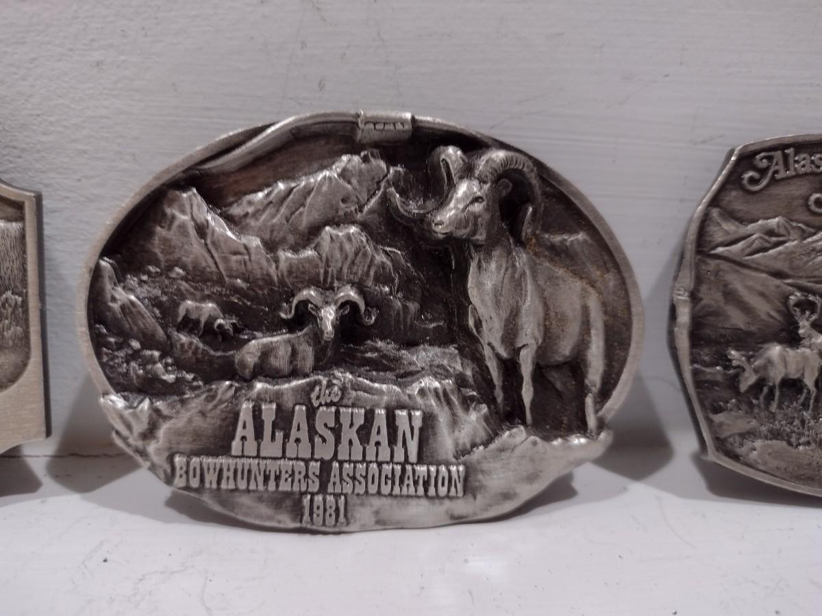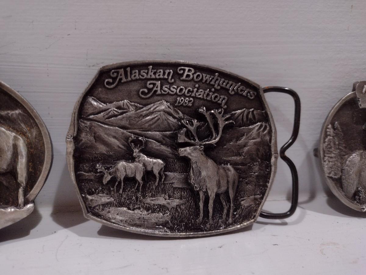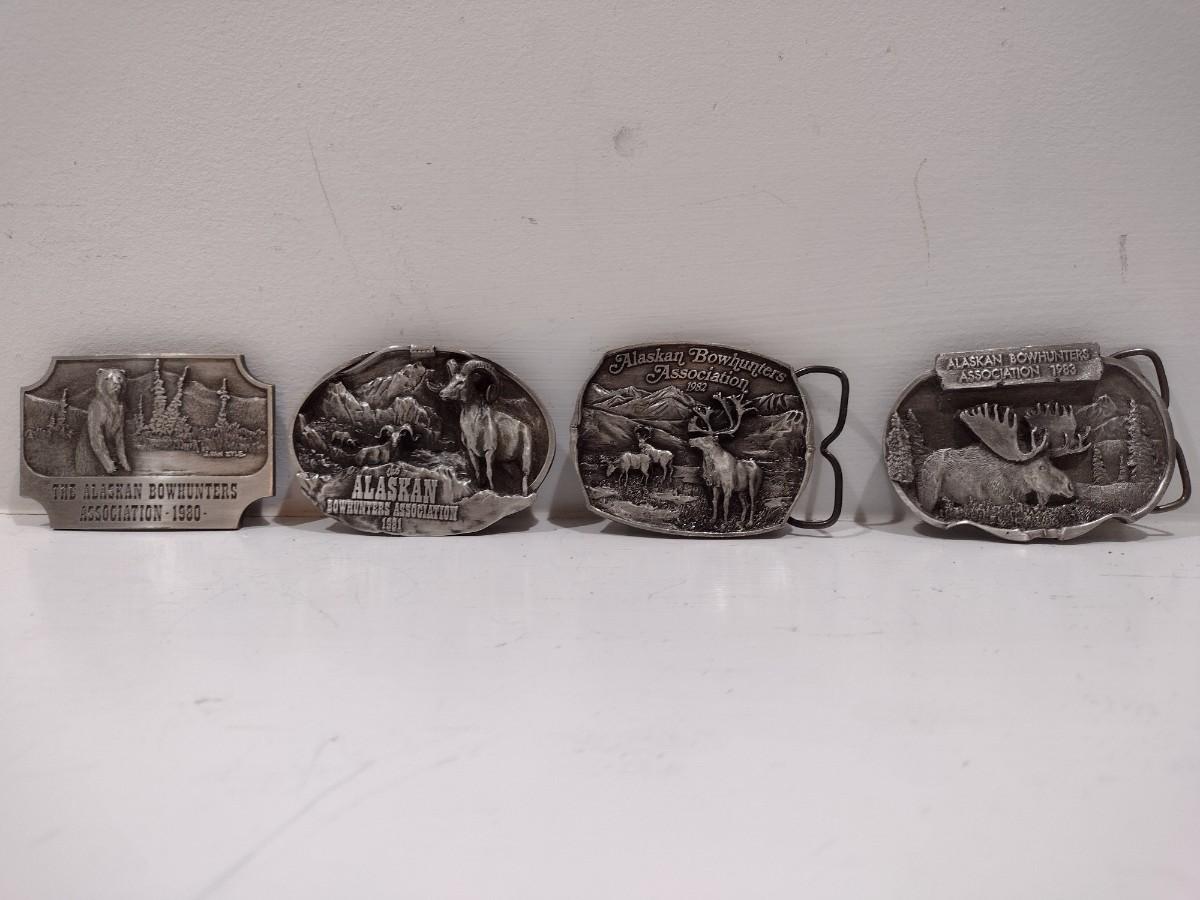 Set of Four Pewter Alaskan Bowhunters Association 1980-1983 Belt Buckles