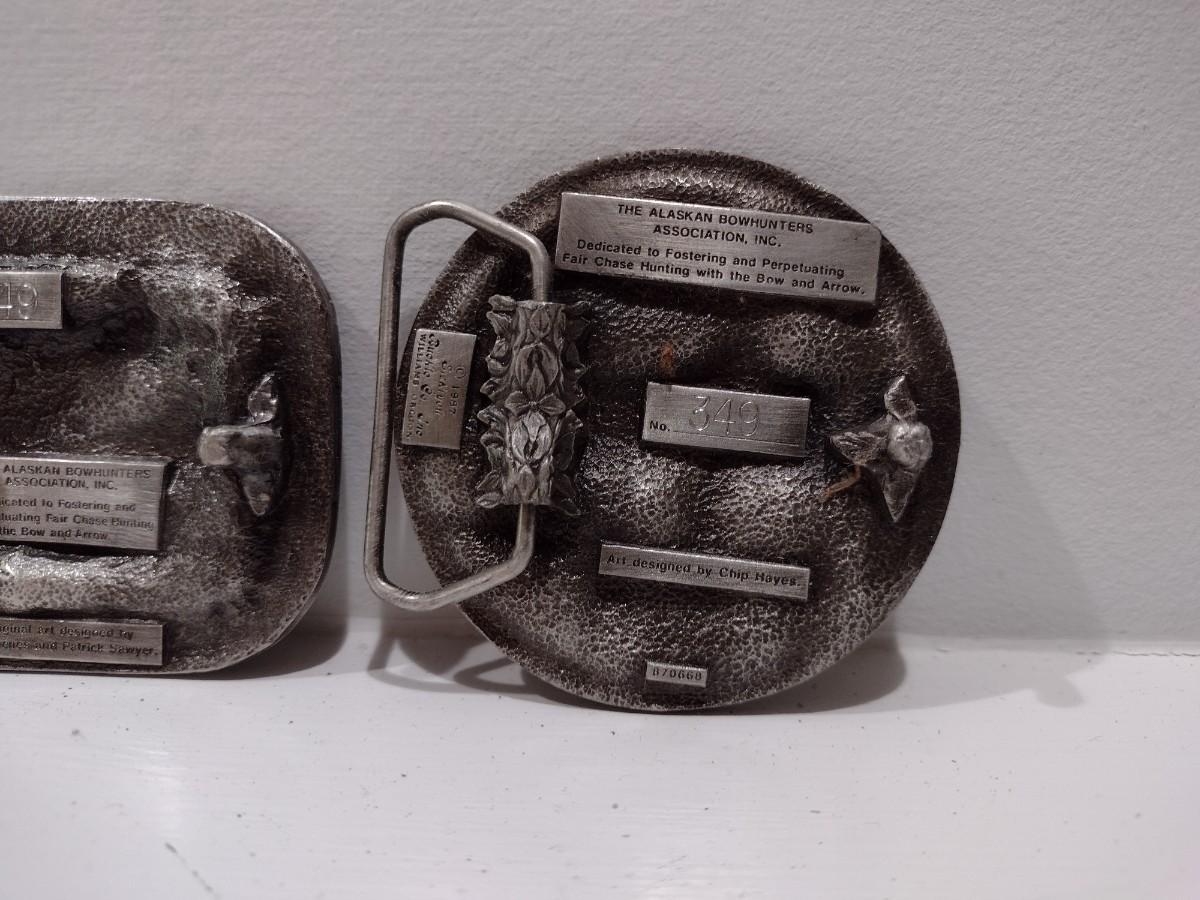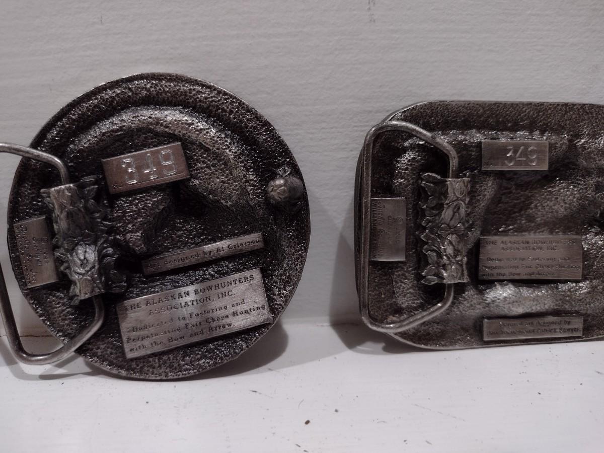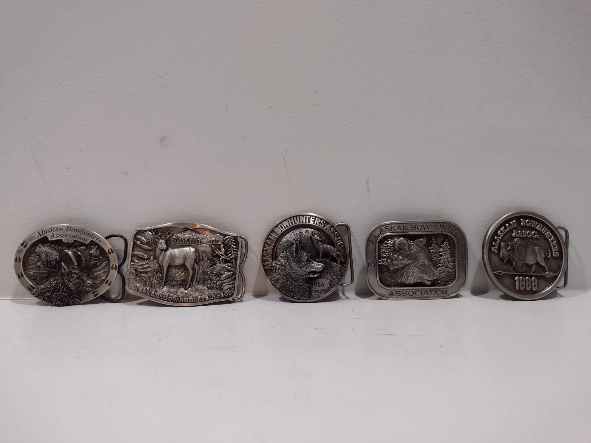 Set of Five Pewter Alaskan Bowhunters Association 1984-1988 Belt Buckles