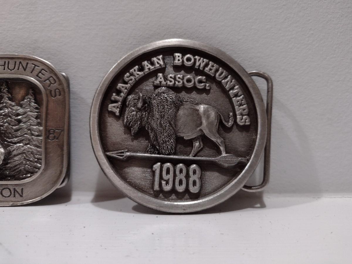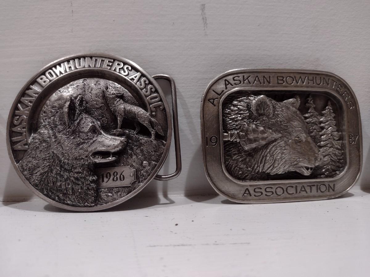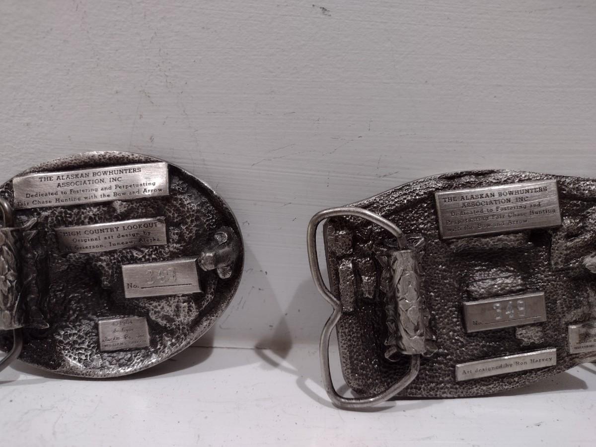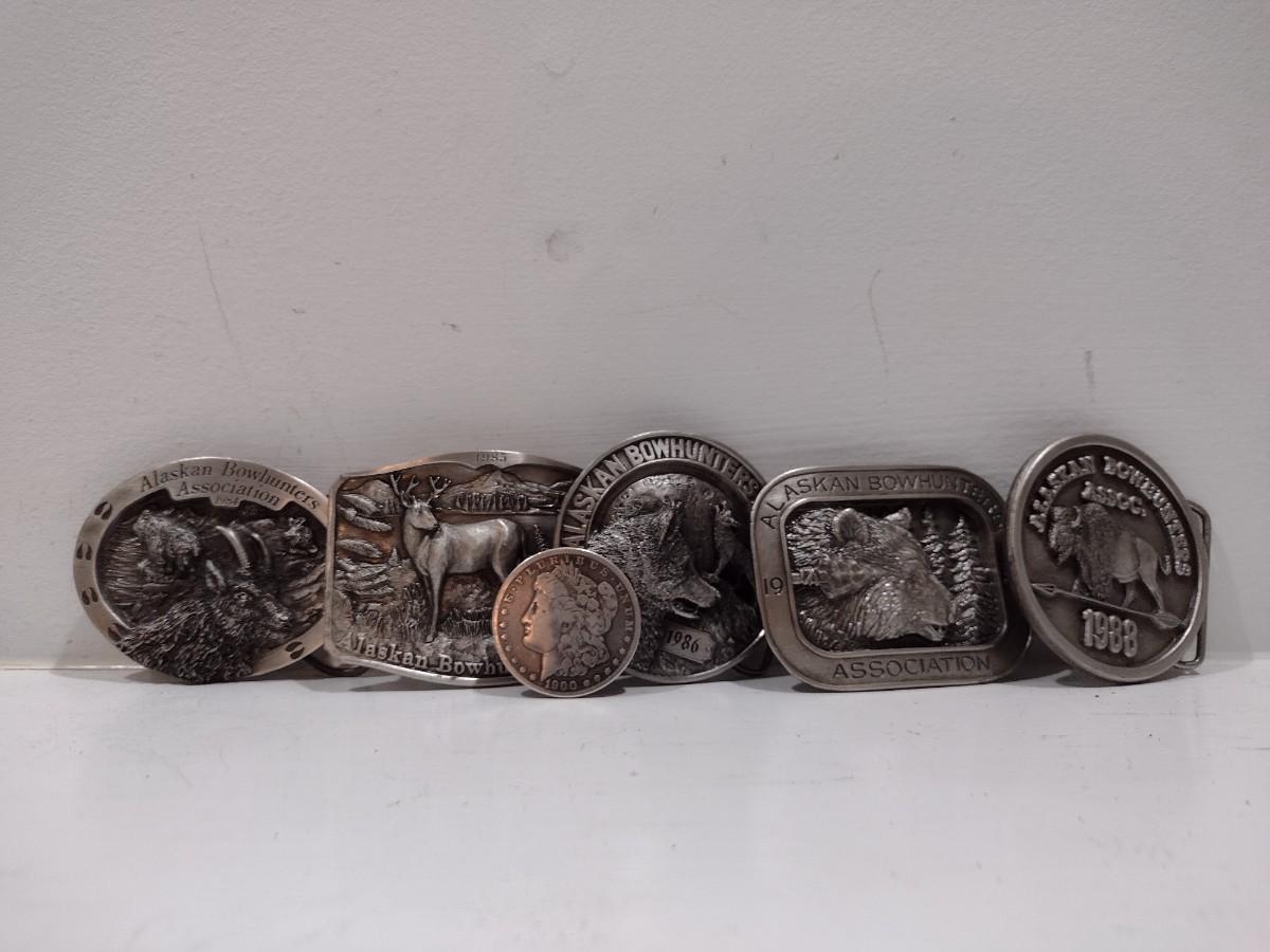Set of Five Pewter Alaskan Bowhunters Association 1984-1988 Belt Buckles