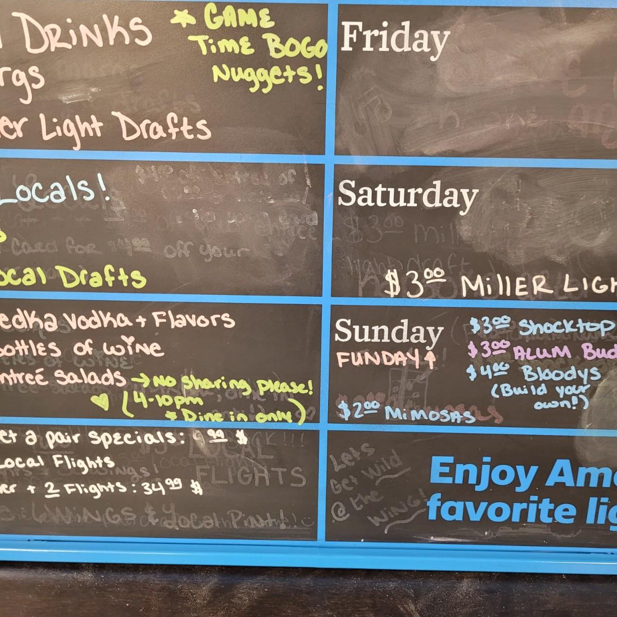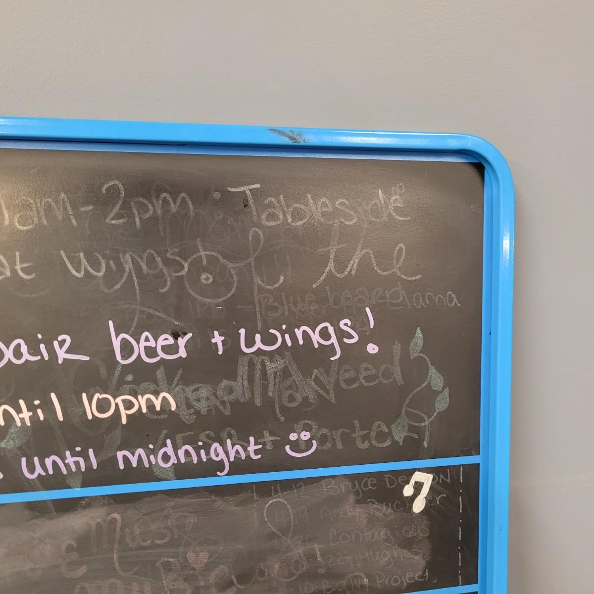 Bud Light daily specials chalkboard sign with divided sections for each day of the week. Blue plastic frame with hanging bracket on back. Good condition with normal wear and tear (see pictures). Measures approximately 40" x28.5". Shipping available. Shipping Art can be costly please call UPS store at 828-252-6930 for quote.