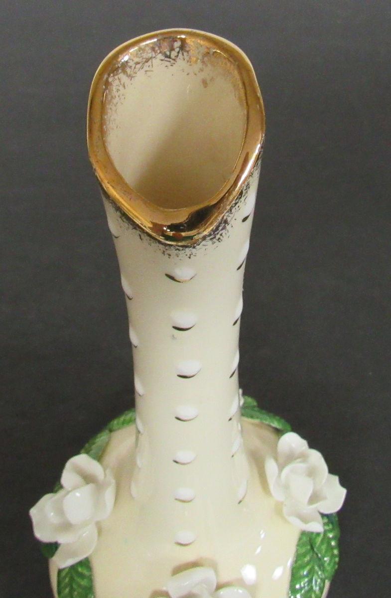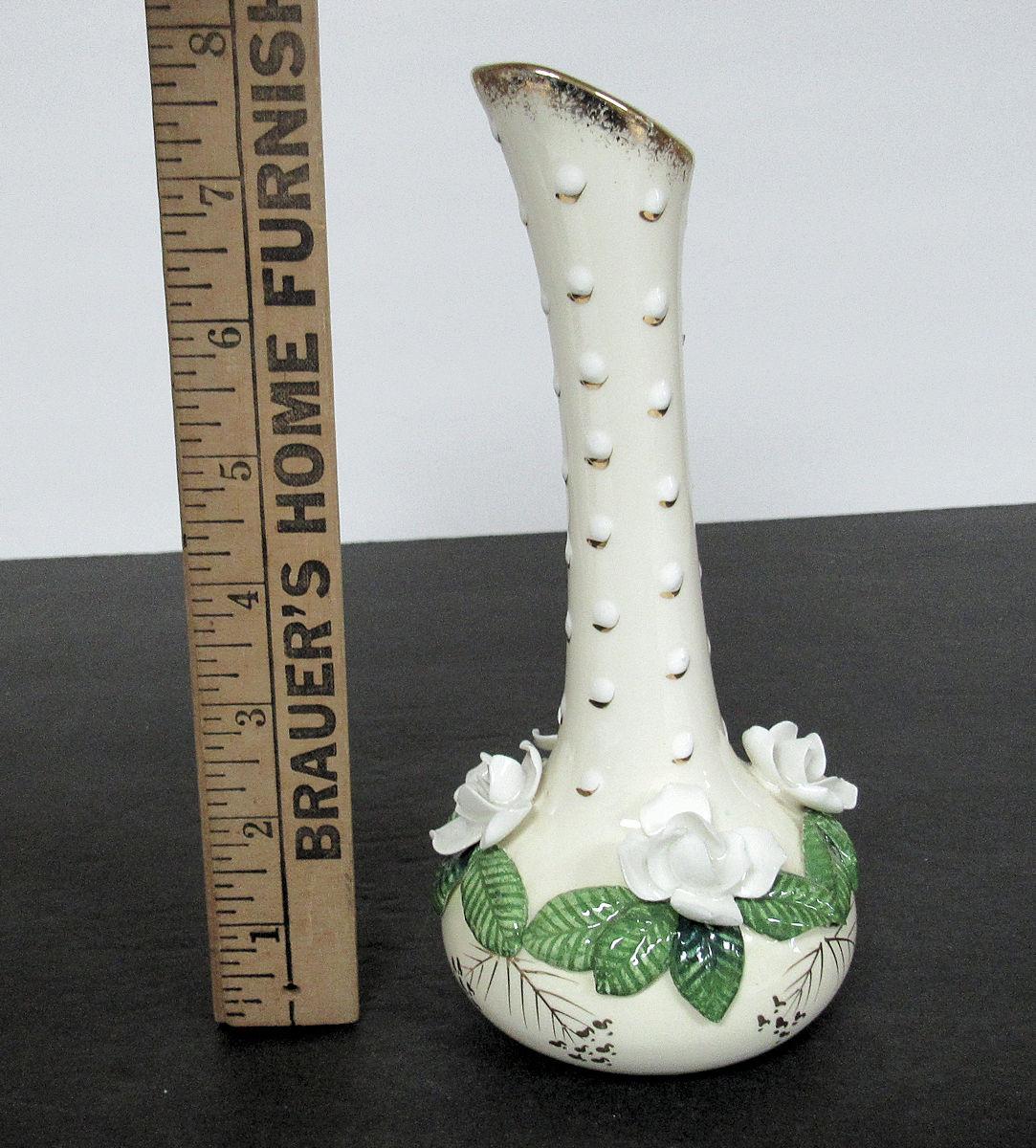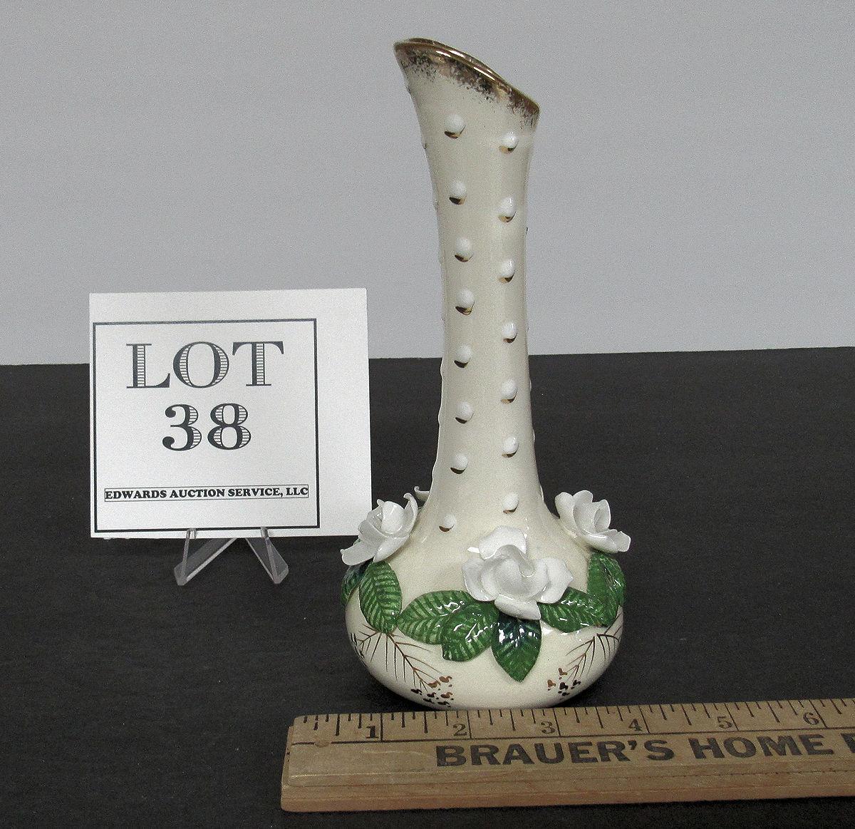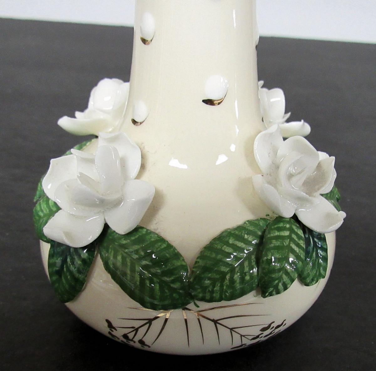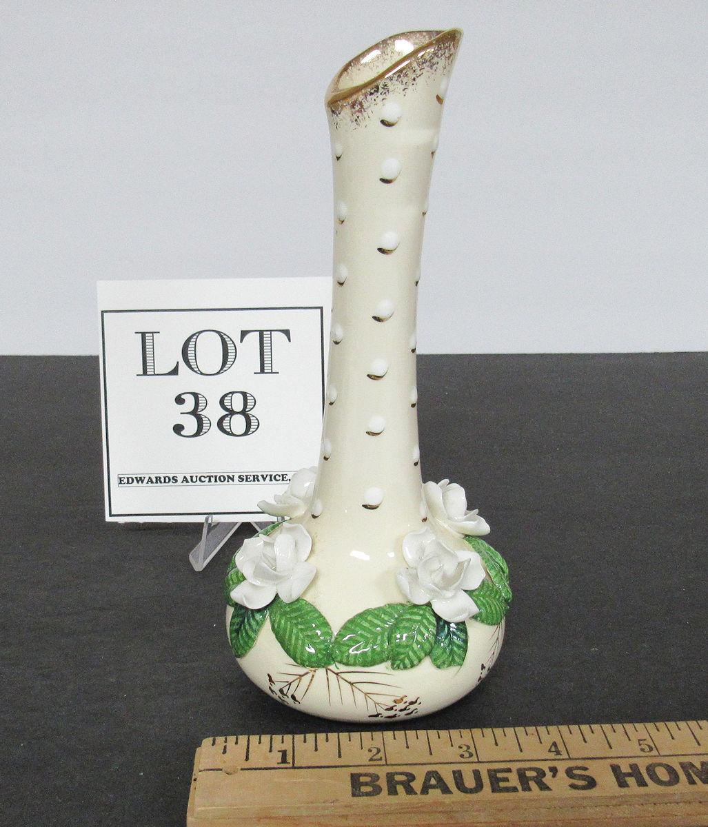 Bud Vase With Applied Roses, Unmarked