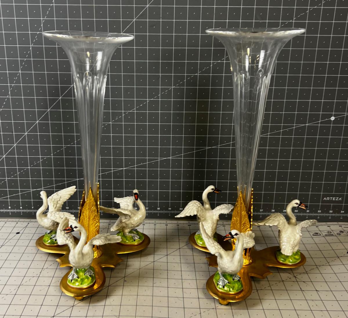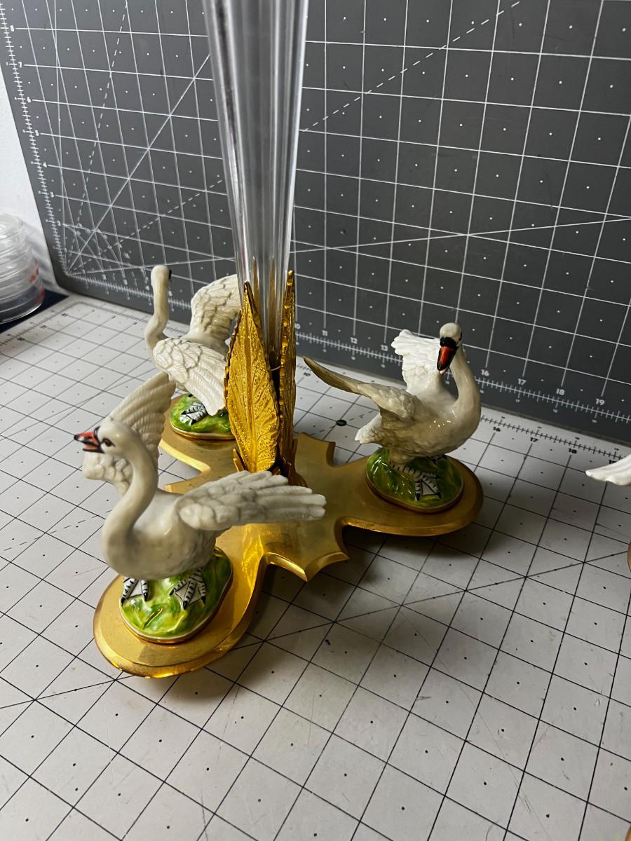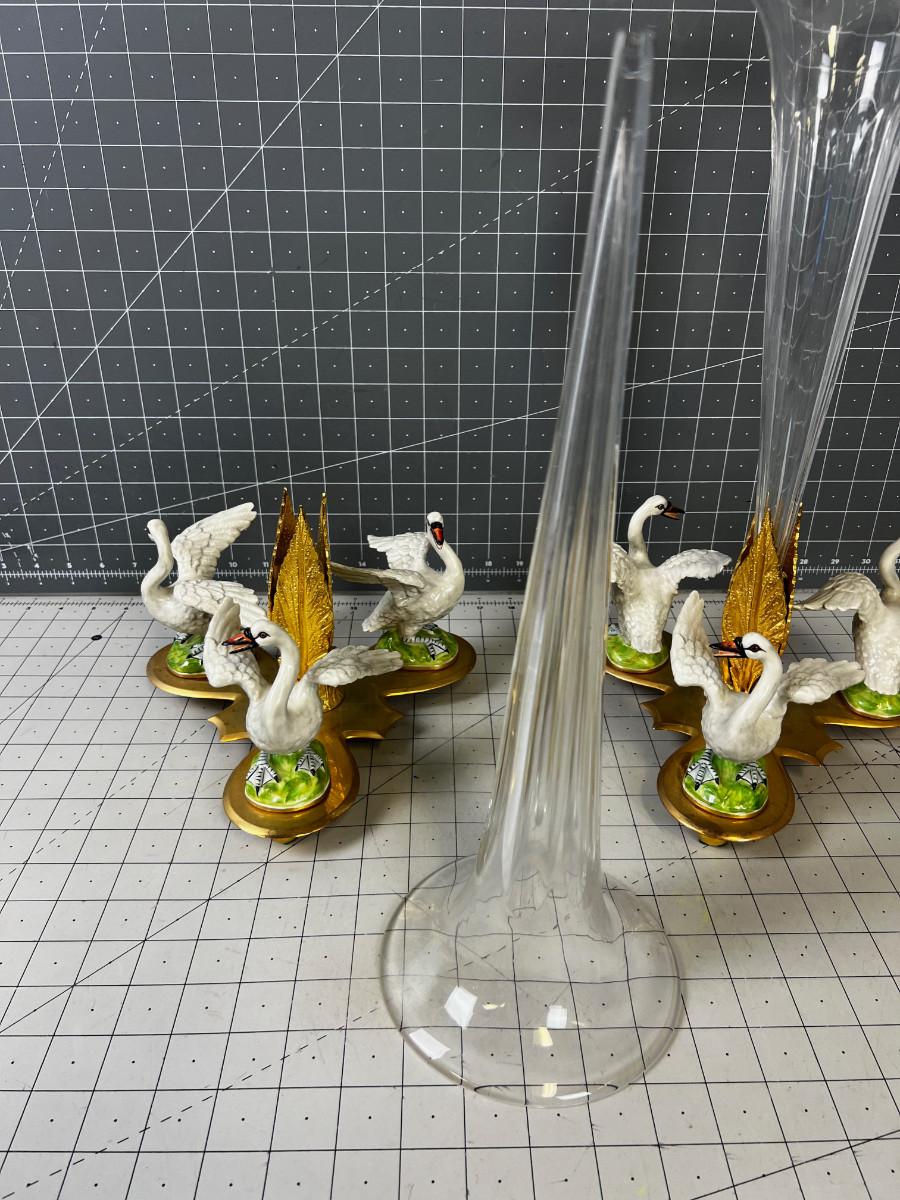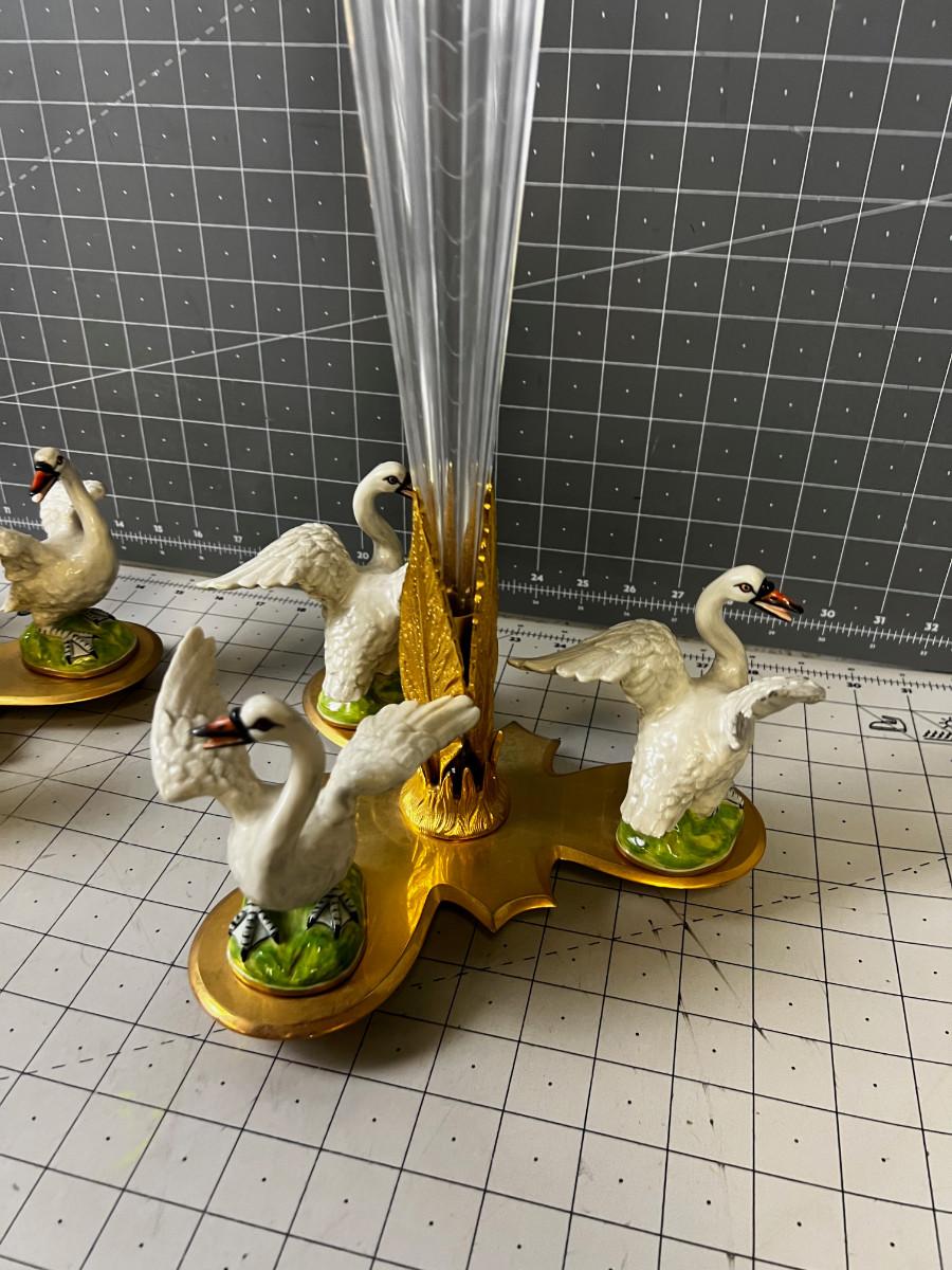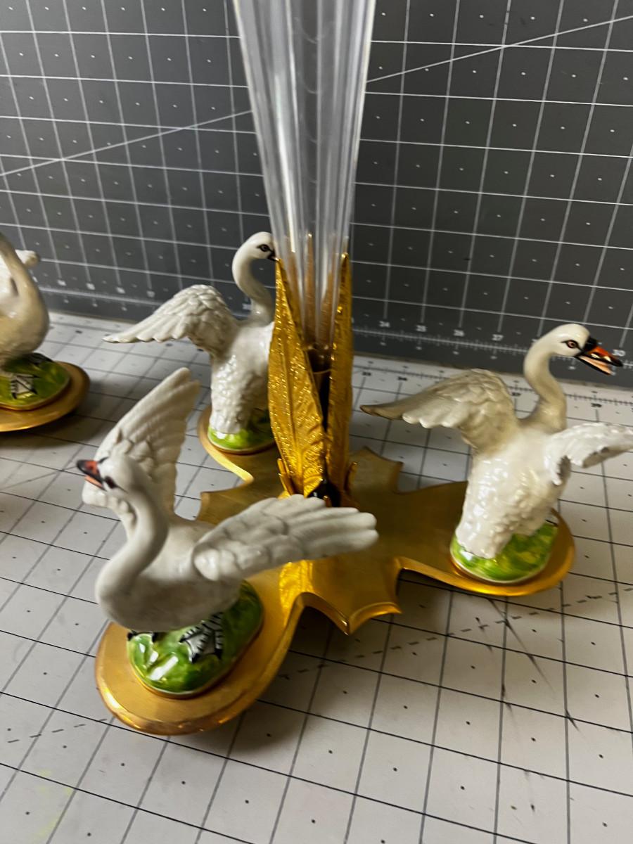 One Swan has been repaired. Super Pretty! COLLECTIBLE. If this Item requires shipping it will be taken to a 3rd party to need to be packed /shipped by a professional shipper. WE WILL NOT SHIP FOR YOU! We will take to a 3rd party! Buyer is required to pay all those associated fees.
