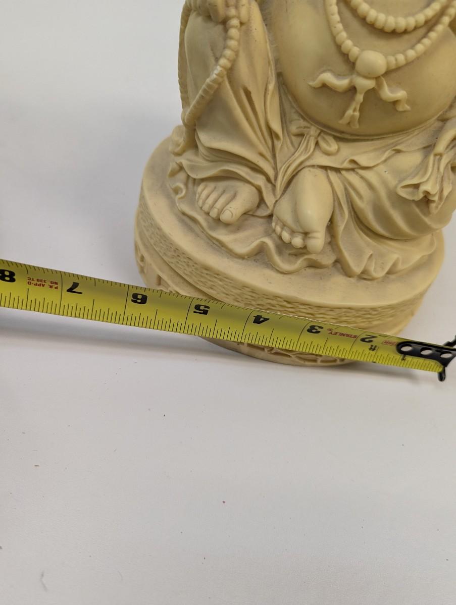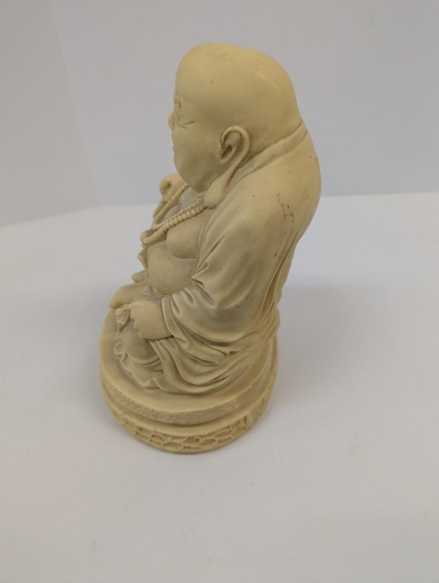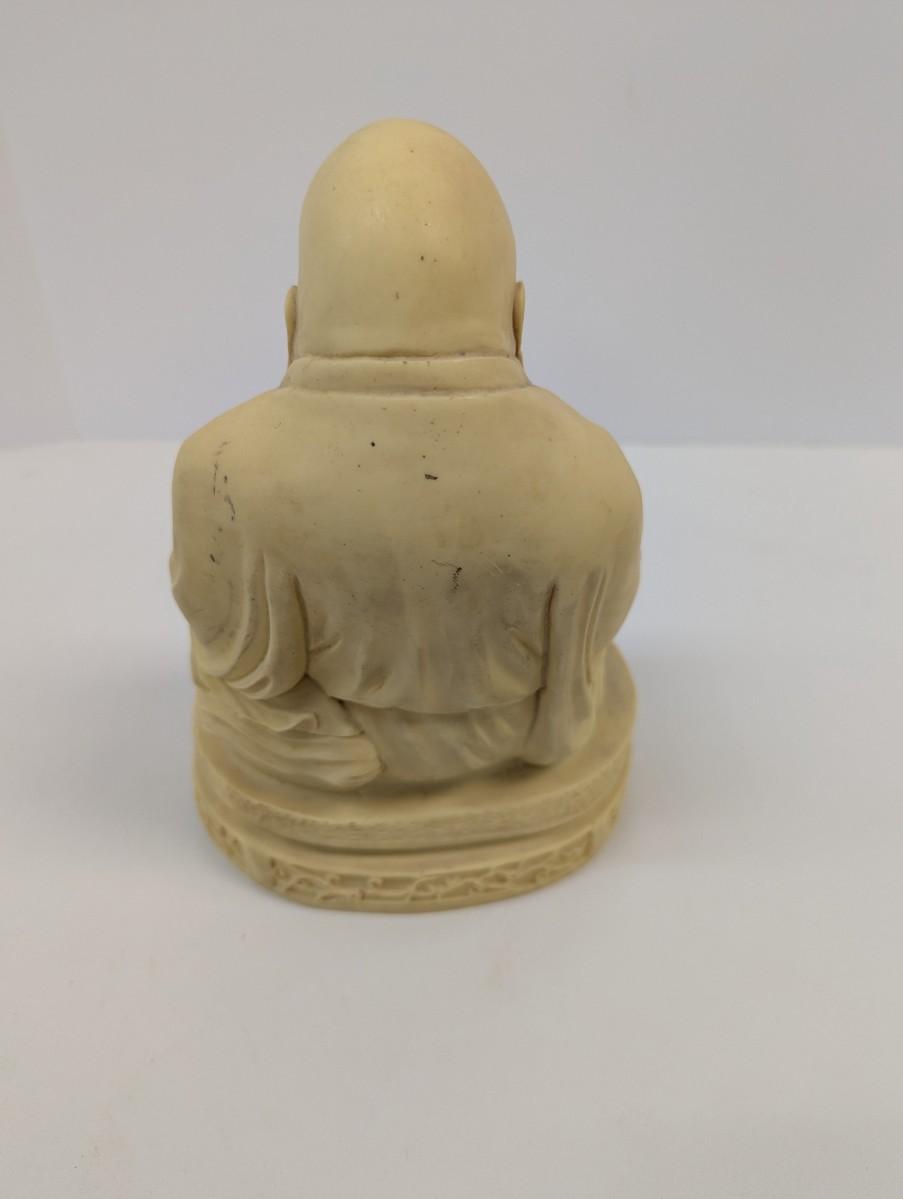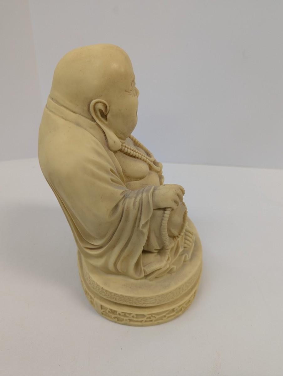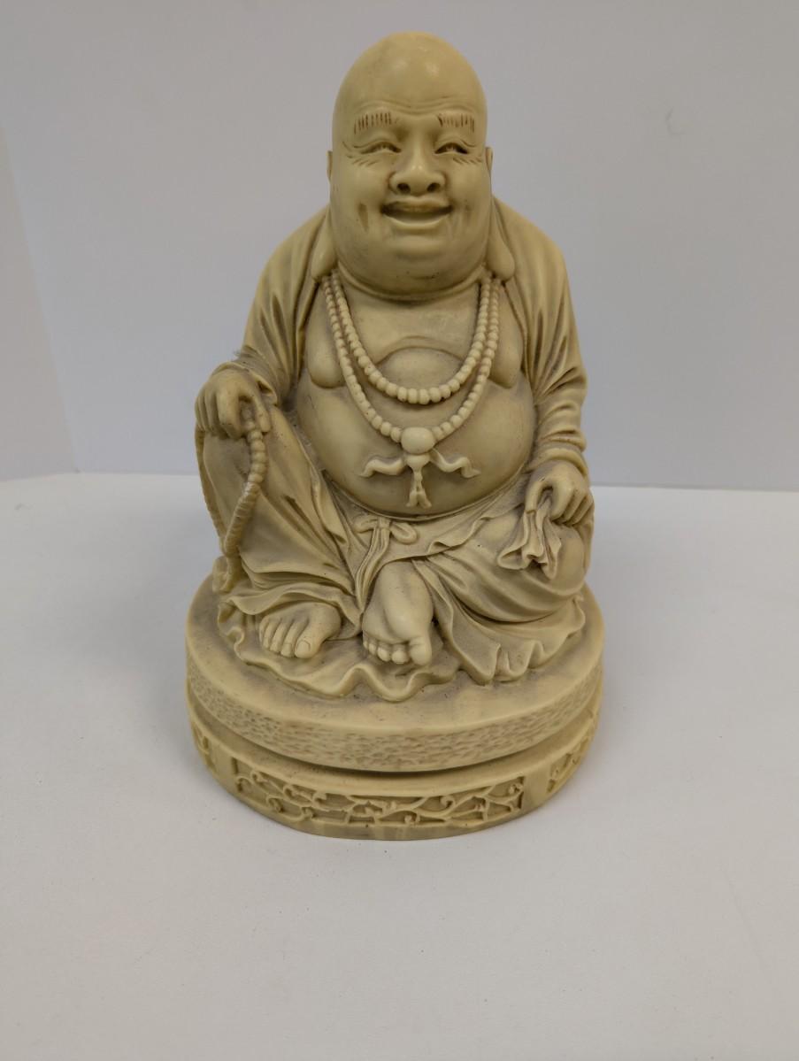 Buddha Statue Vintage Seated Laughing Resin Pedestal Happy Man Figure