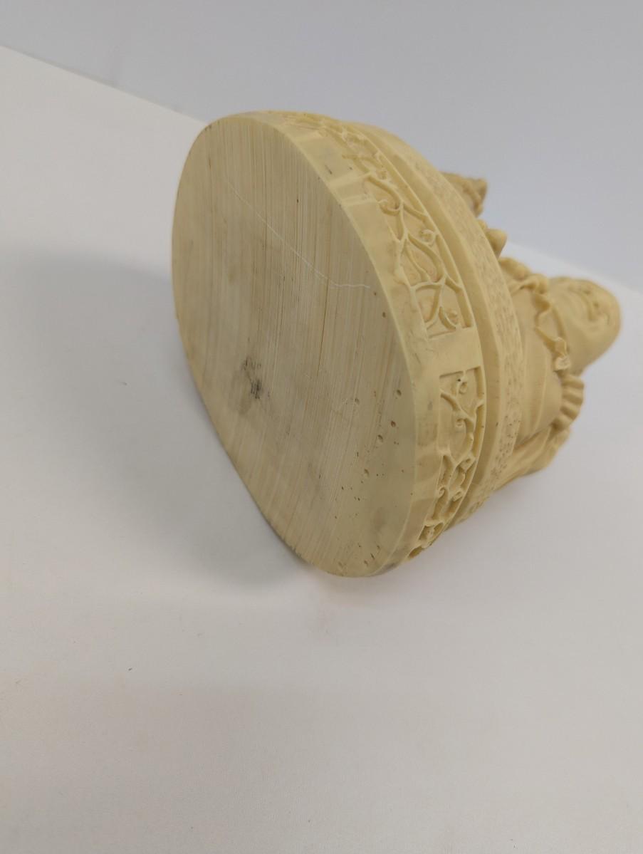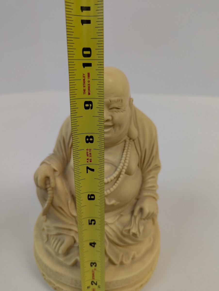 This vintage resin Buddha statue depicts a seated laughing figure that exudes happiness and contentment. With its timeless design and expert craftsmanship