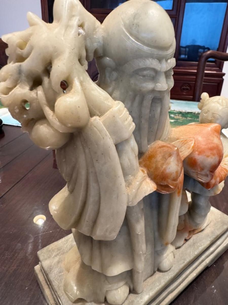 Chinese Soapstone Statue Carving Shou Lao God of Longevity