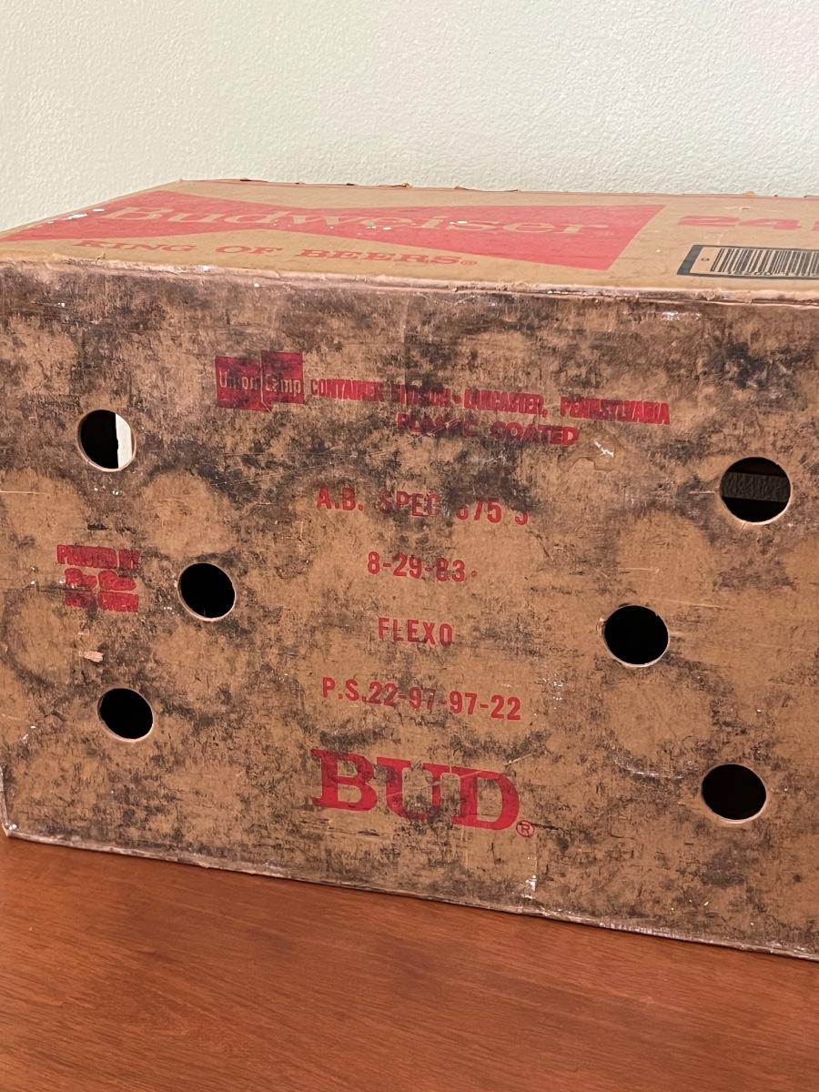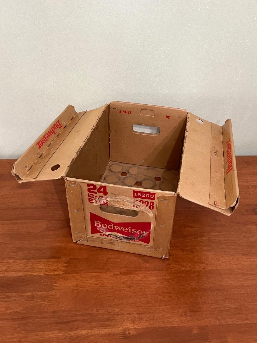BUDWEISER ~ Hinged Waxed Cardboard Flip Top Crate