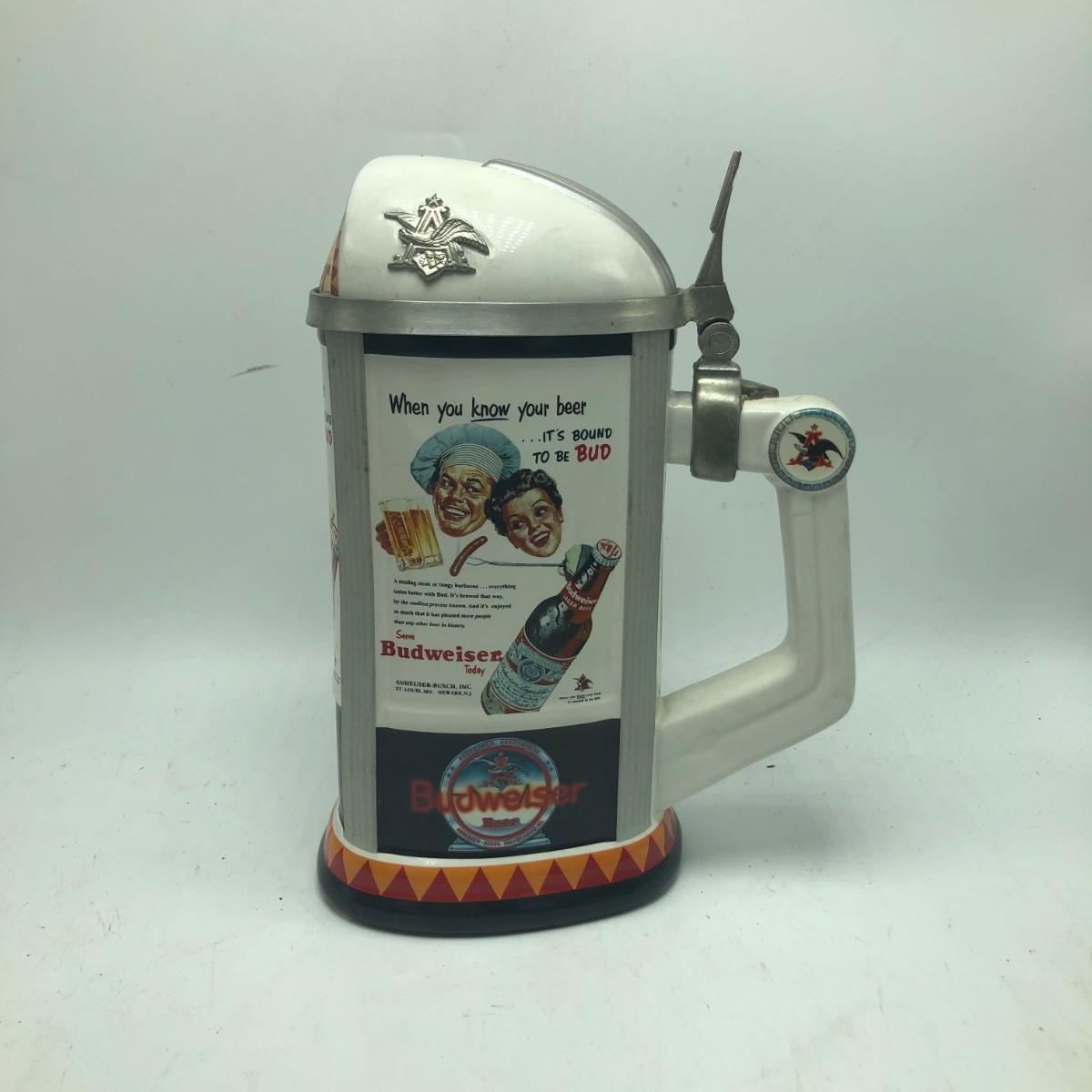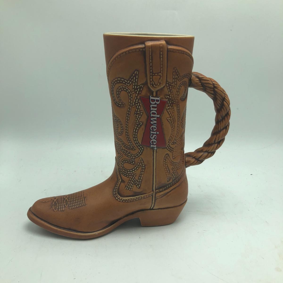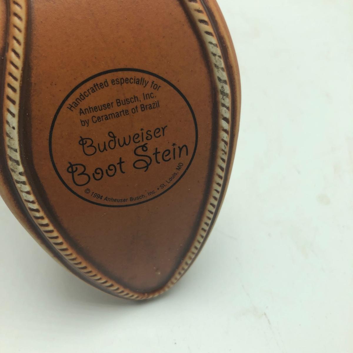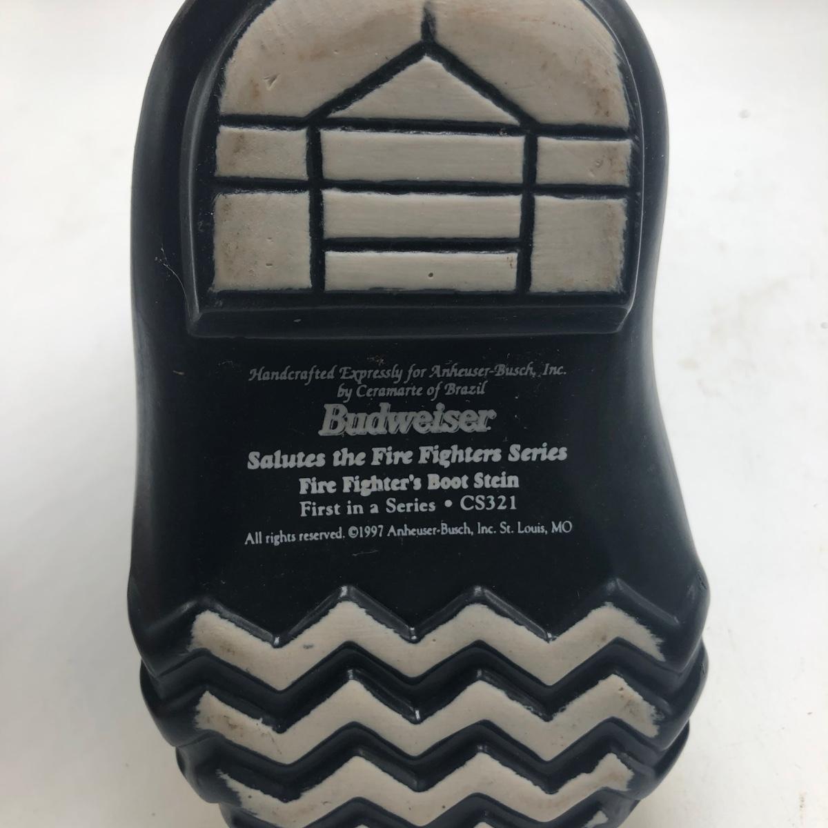 Lot includes Budweiser Cowboy boot stein, Firefighter stein. And a Budweiser Today stein. Largest stein measures 4.5” x 6” x 9”.