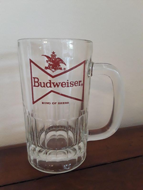 Classic Budweiser beer logo mug. Clear, heavy glass. No chips