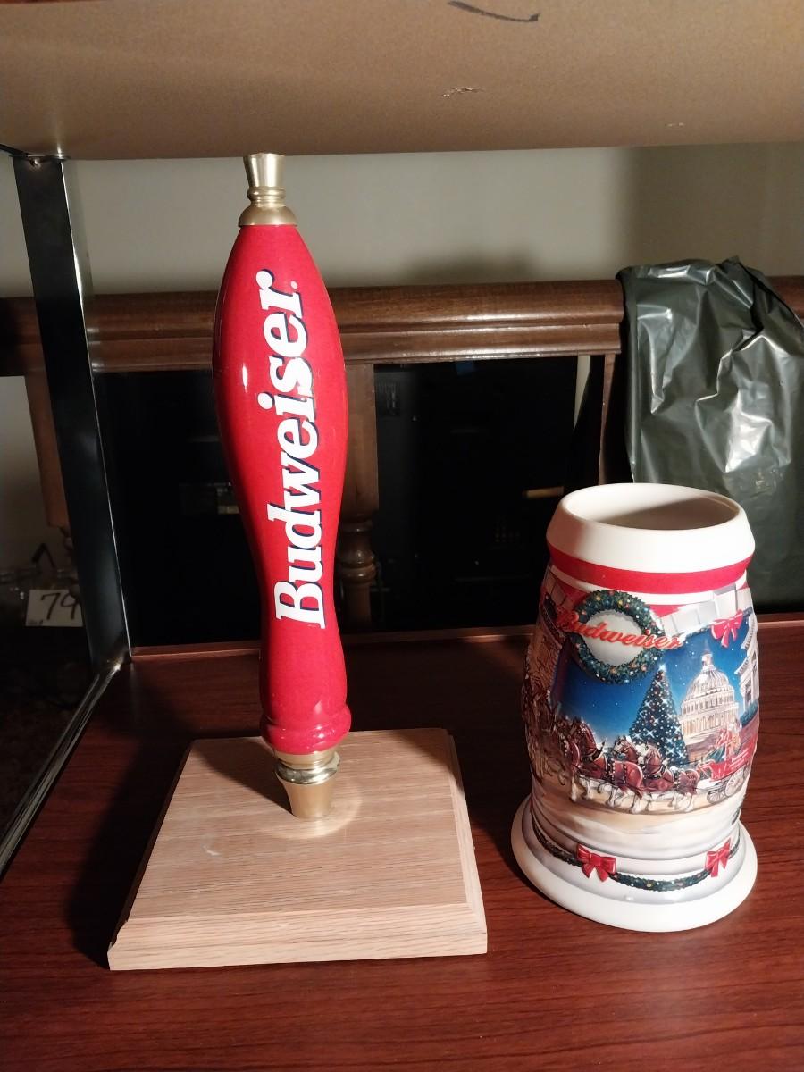 BUDWEISER STEIN AND BEER TAP HANDLE