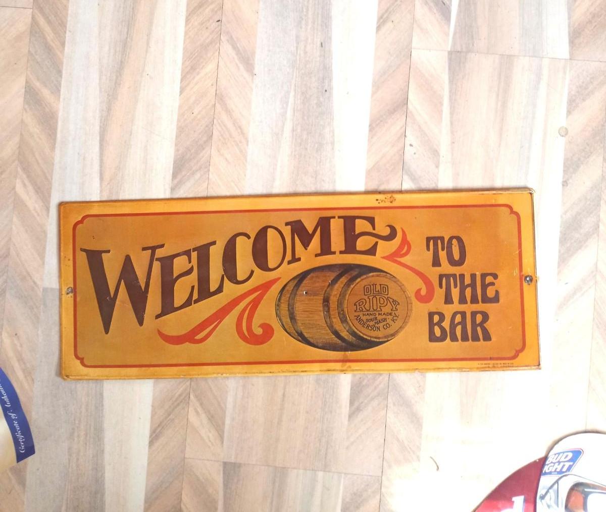 BUDWEISER STEIN -WELCOME BAR SIGN 19X7 -CARDBOARD BUD ADVERTISING