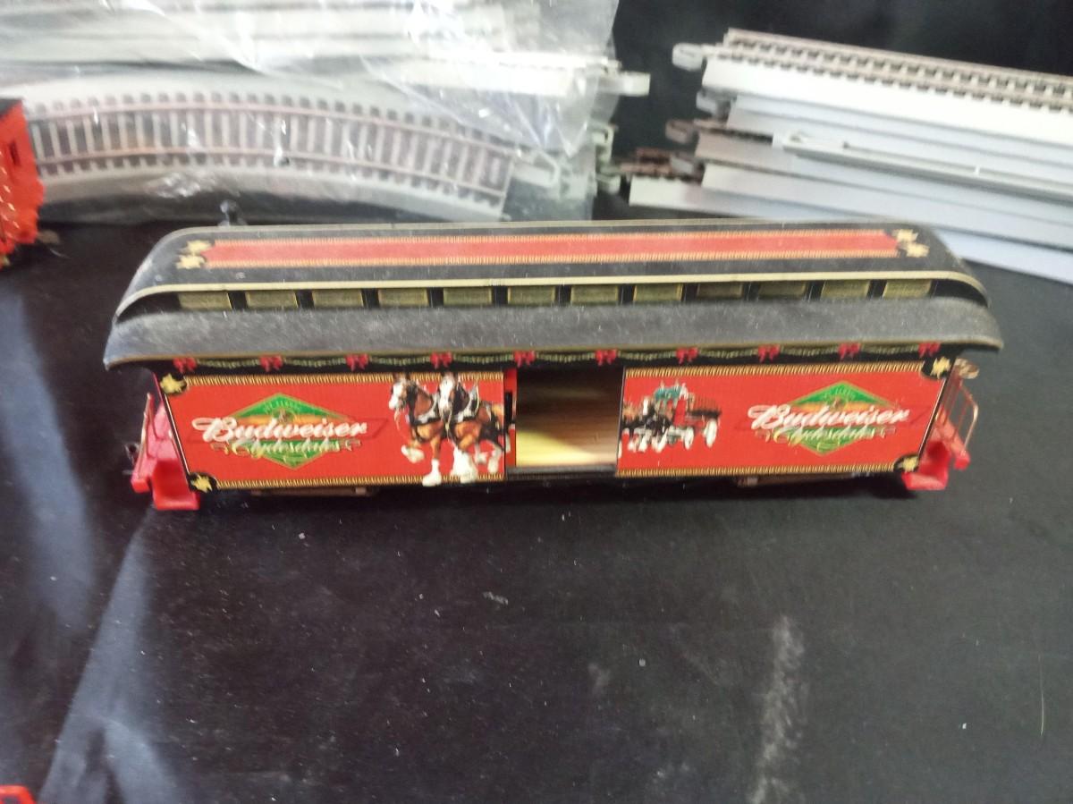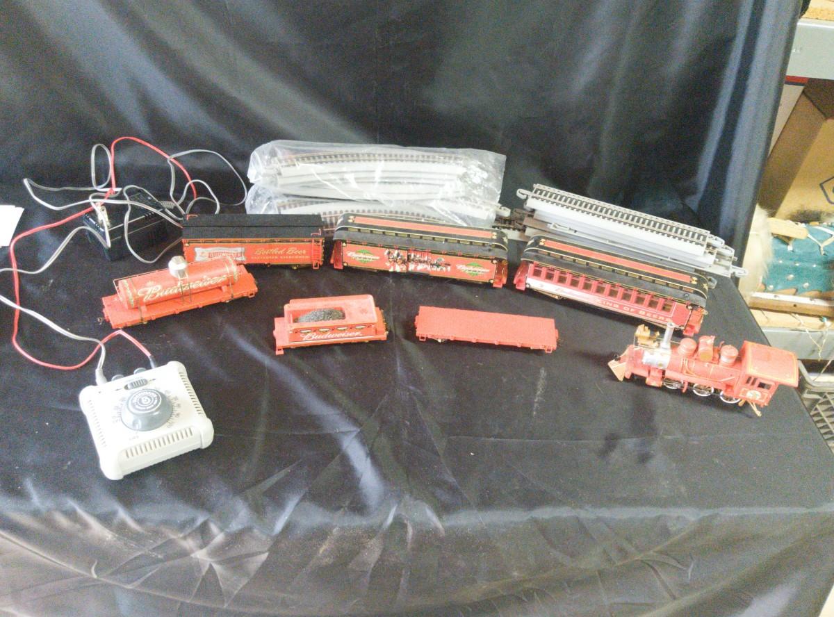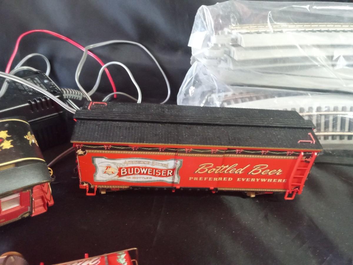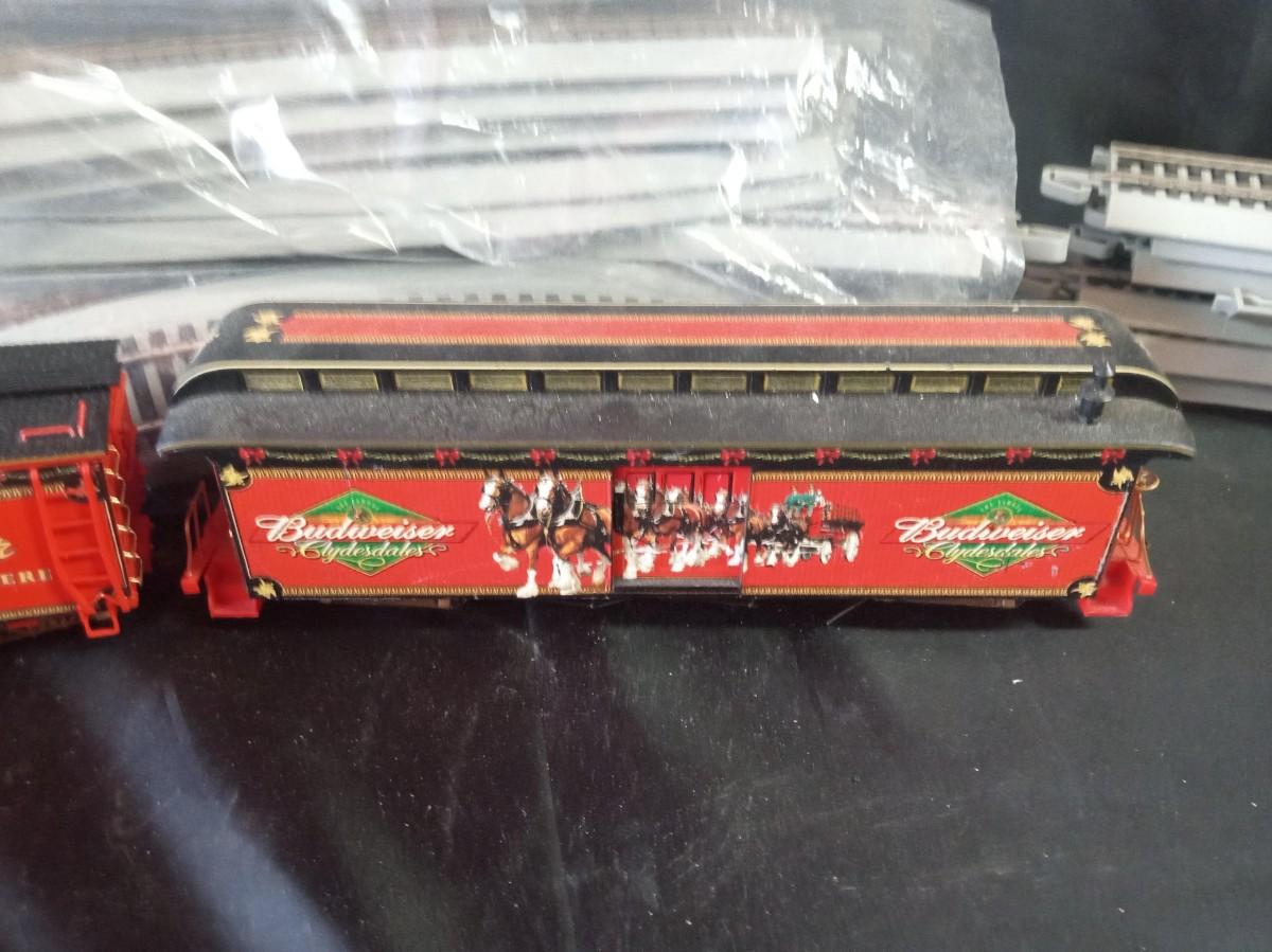 BUDWEISER TRAIN WITH TRACKS AND TRANSFORMER