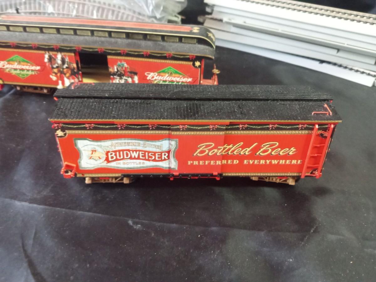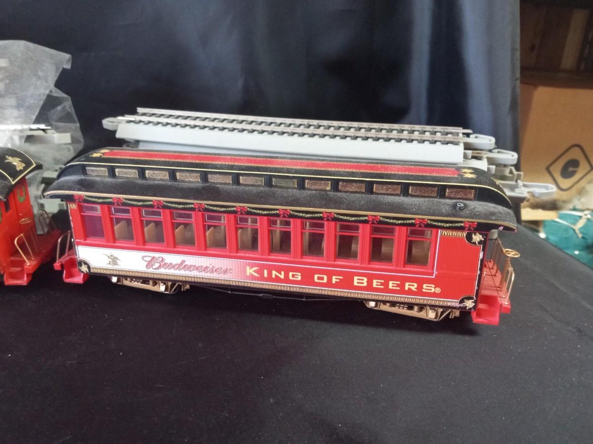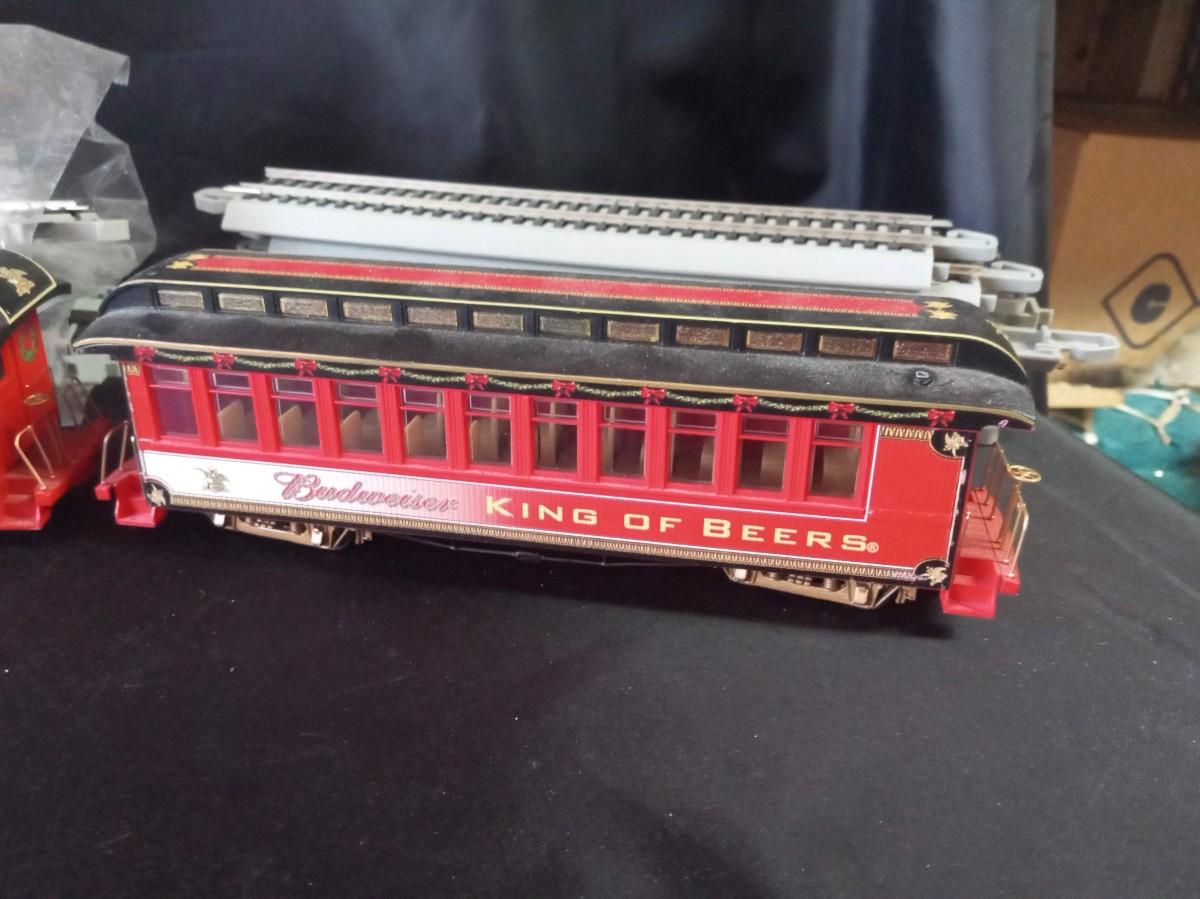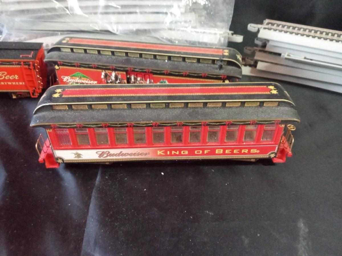 BUDWEISER TRAIN WITH TRACKS AND TRANSFORMER