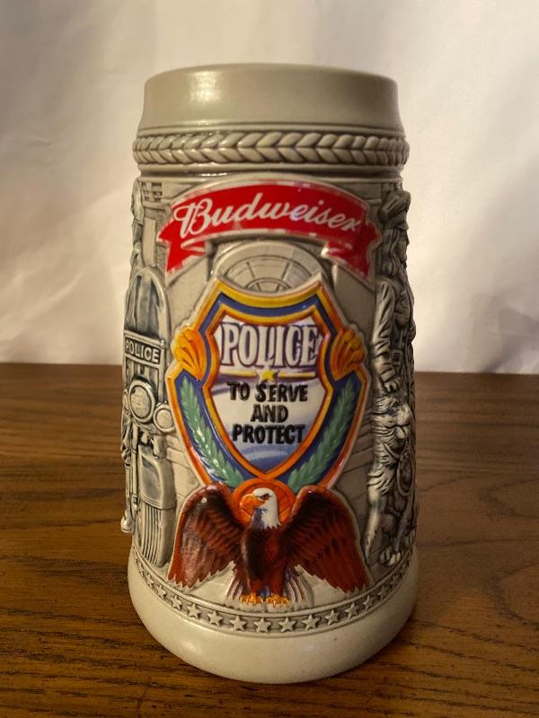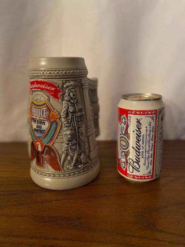Budwiser Can Candle, Budwiser Police Serve and Protect Stein 2002 Anheuser Busch 7 in tall