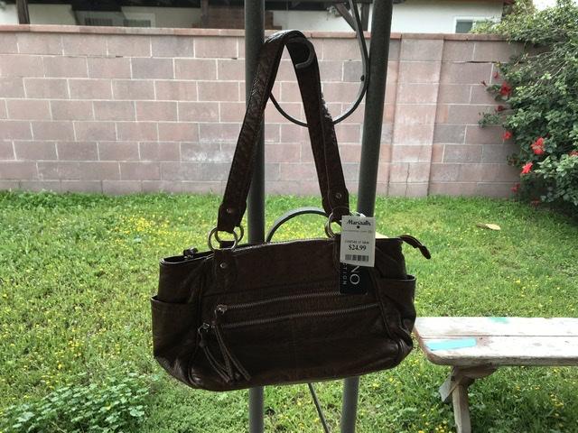 New with tags. Bueno Collection Handbag. Dark brown faux leather. Multiple zipper pockets.