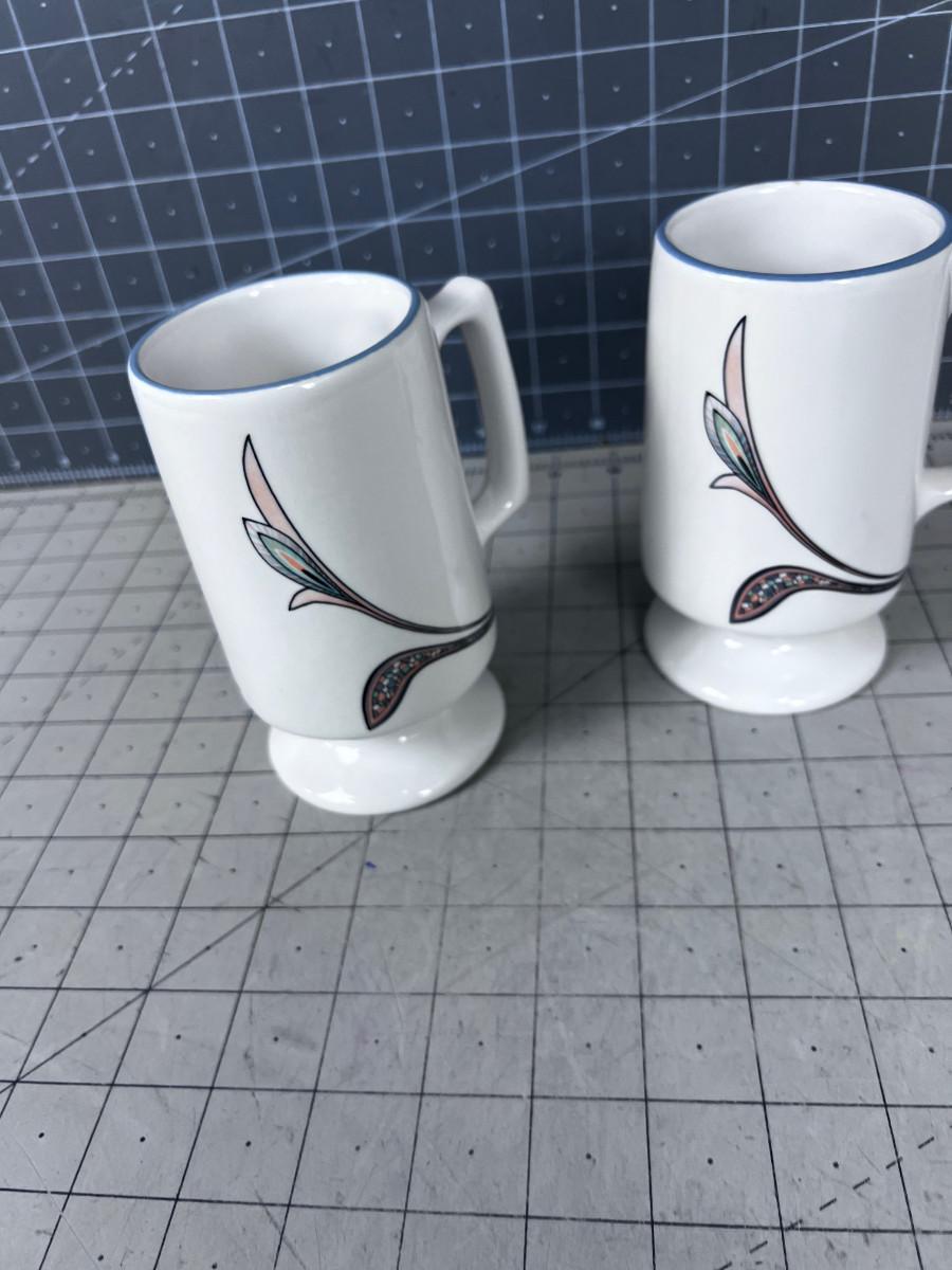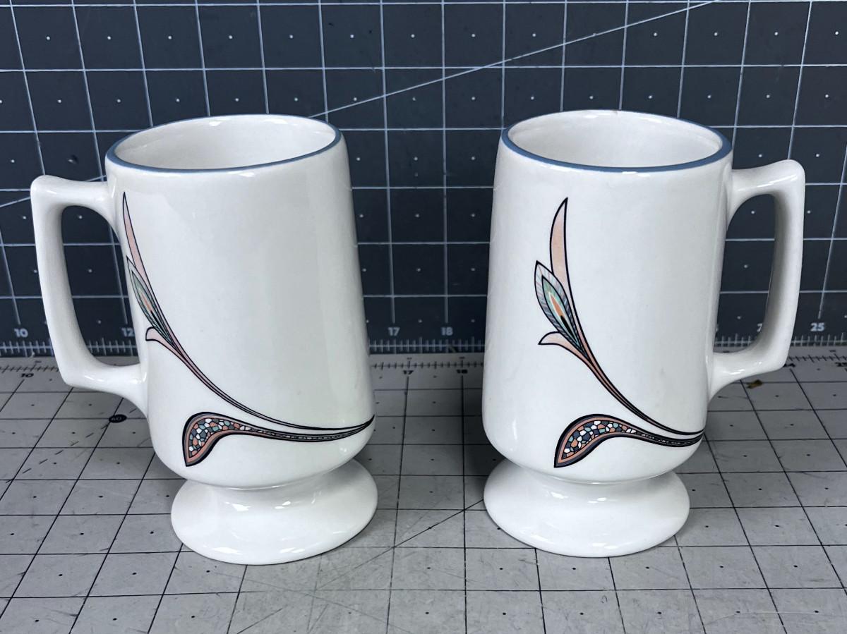 Buffalo China Mosaic LILY Pedestal Coffee Mug pair