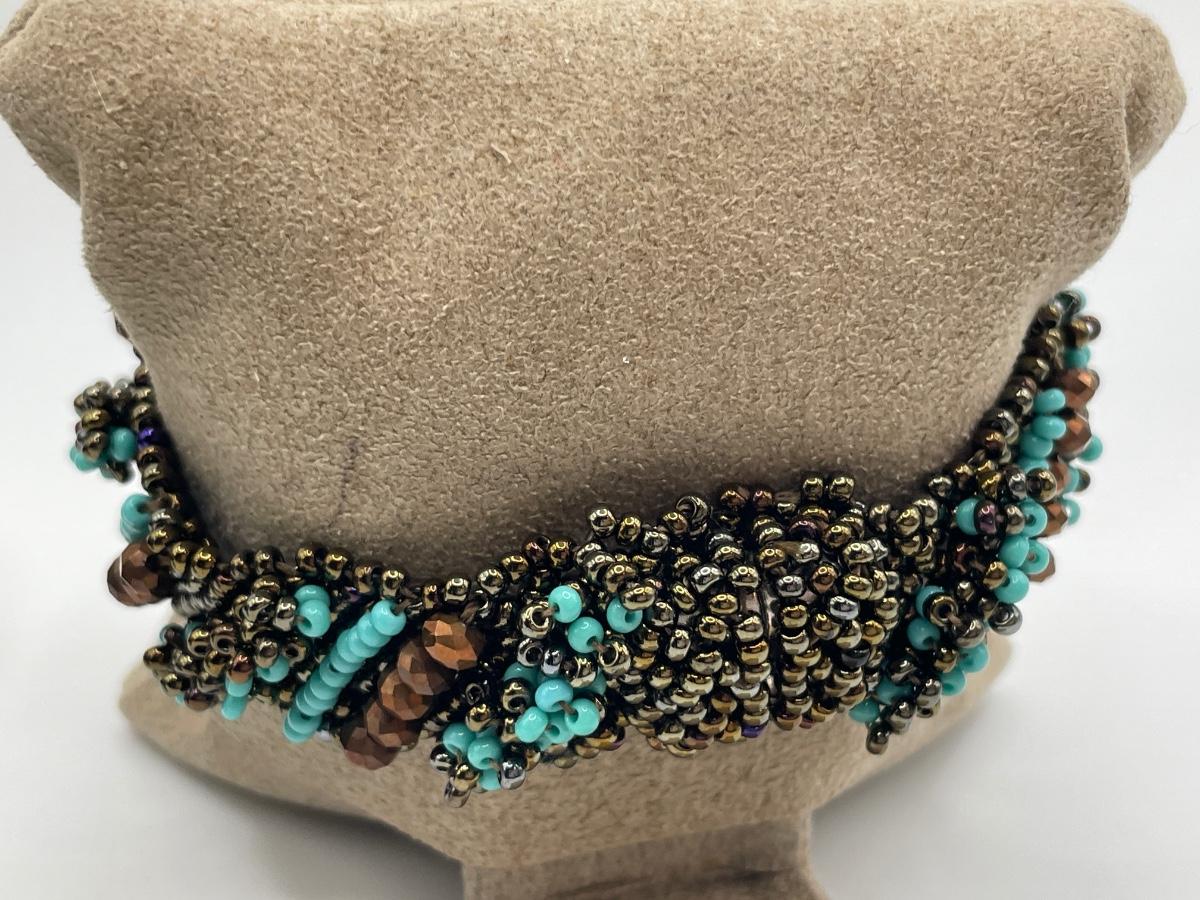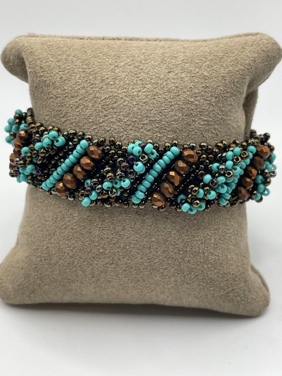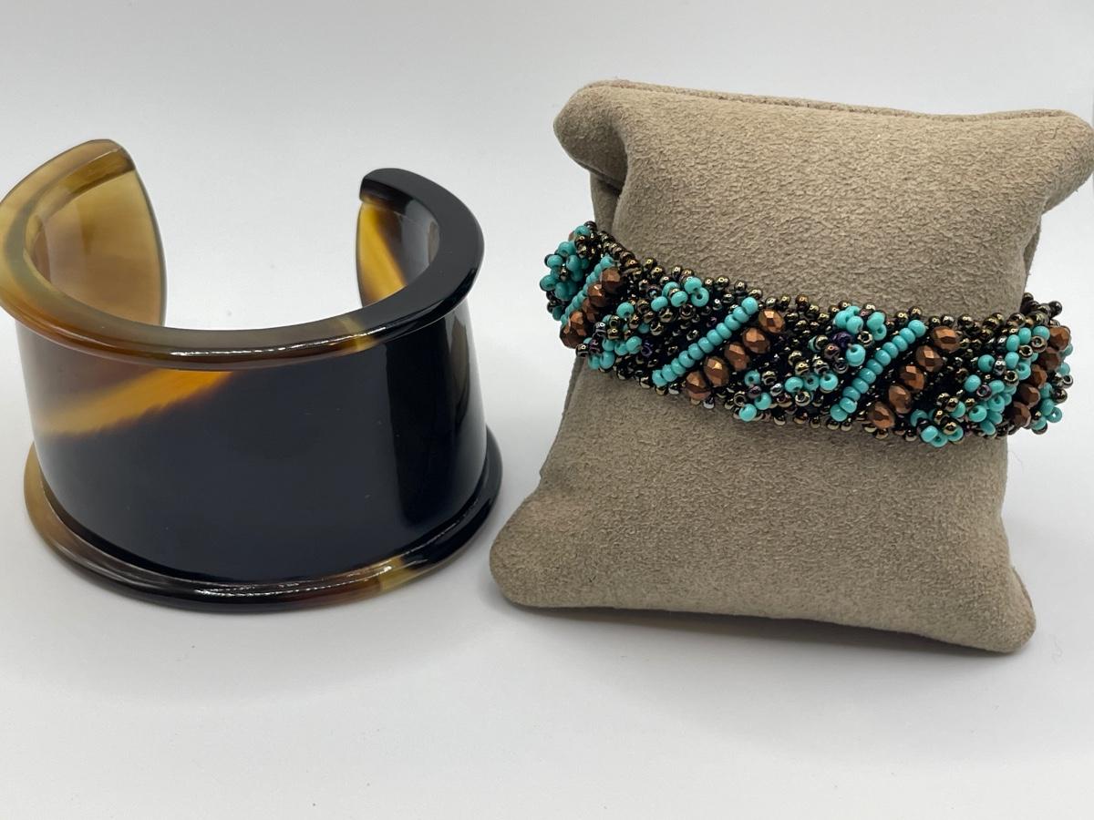 Buffalo horn cuff bracelet with turquoise colored bead bracelet