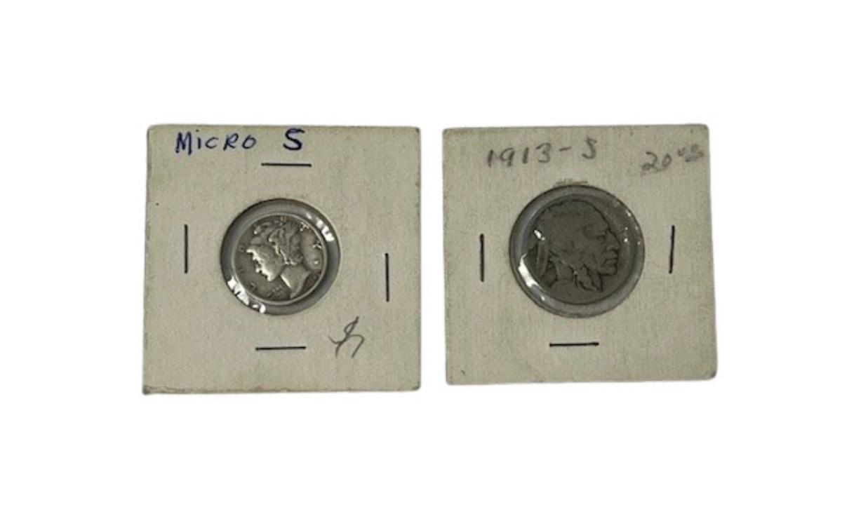 **WIRE TRANSFER IS REQUIRED IF SHIPPED.** Includes a 1945 Micro S Mercury dime, and a 1913-S Buffalo nickel. [GL]