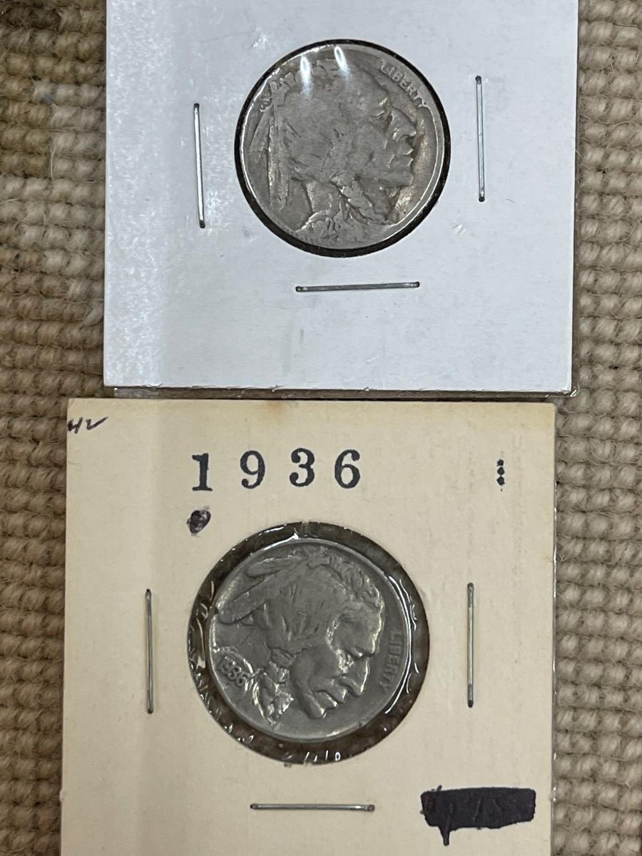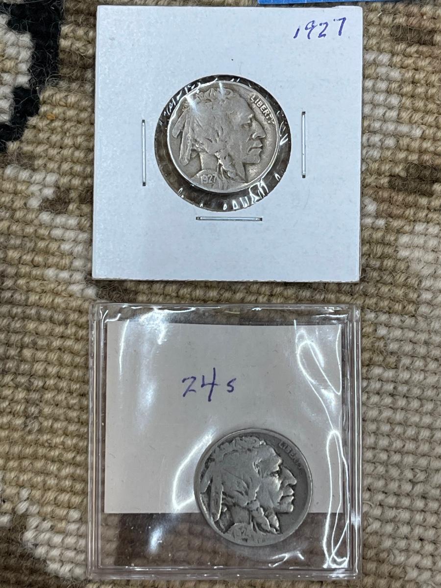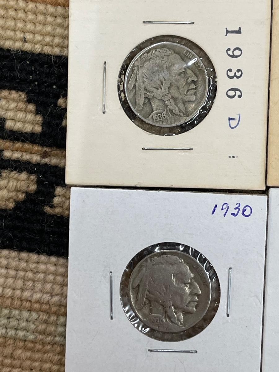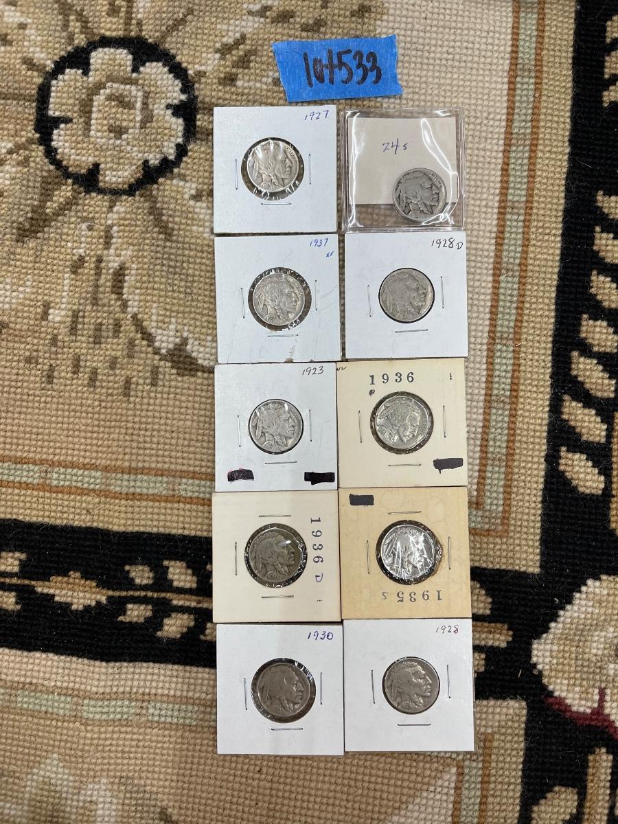(10) vintage silver Buffalo nickels, 1927, 1924S, 1937, 1928D, 1923, 1936, 1936D, 1935S, 1930, 1928.
