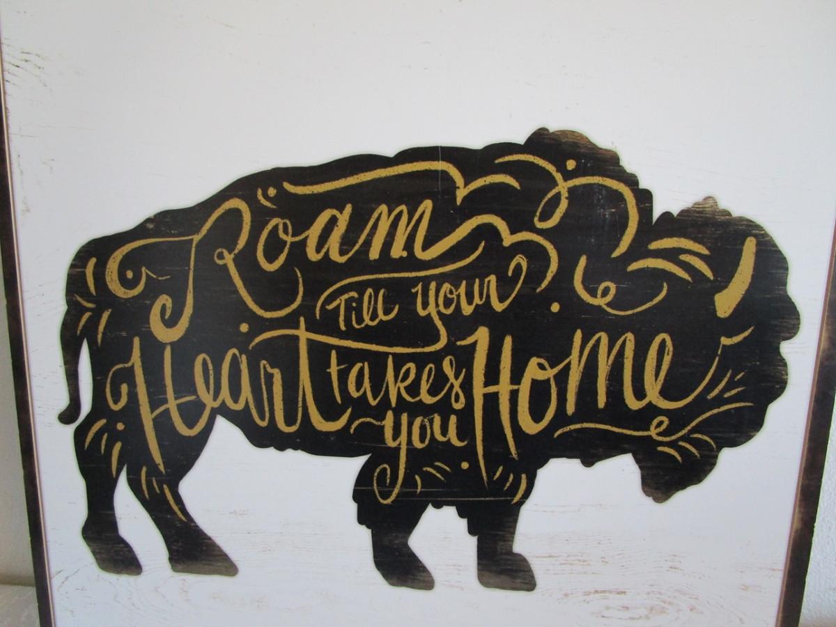 18" x18", "Roam Til Your Heart Takes You Home" inscription, see pictures